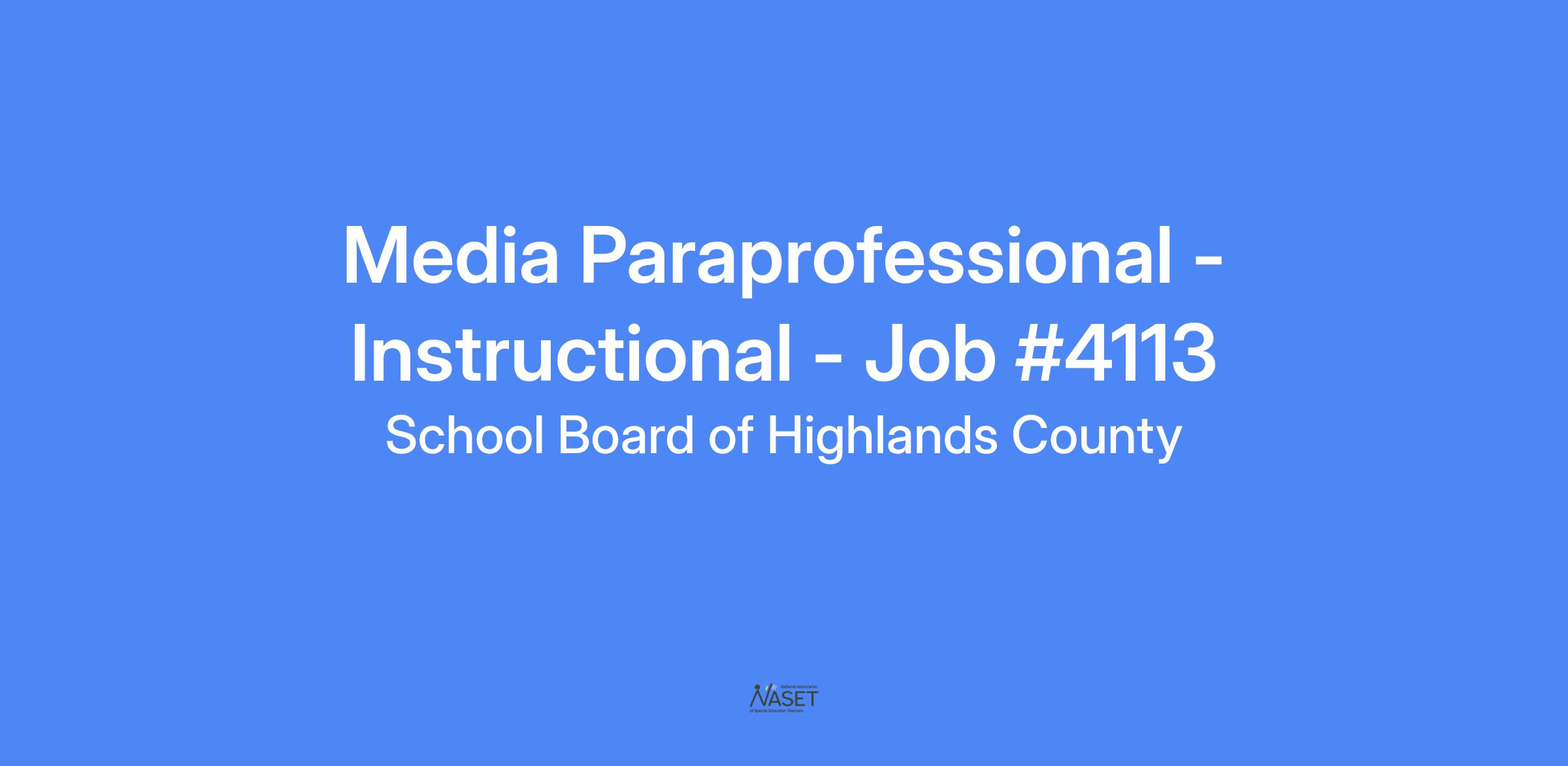 ASSIGNMENT: Paraprofessional - Instructional Program