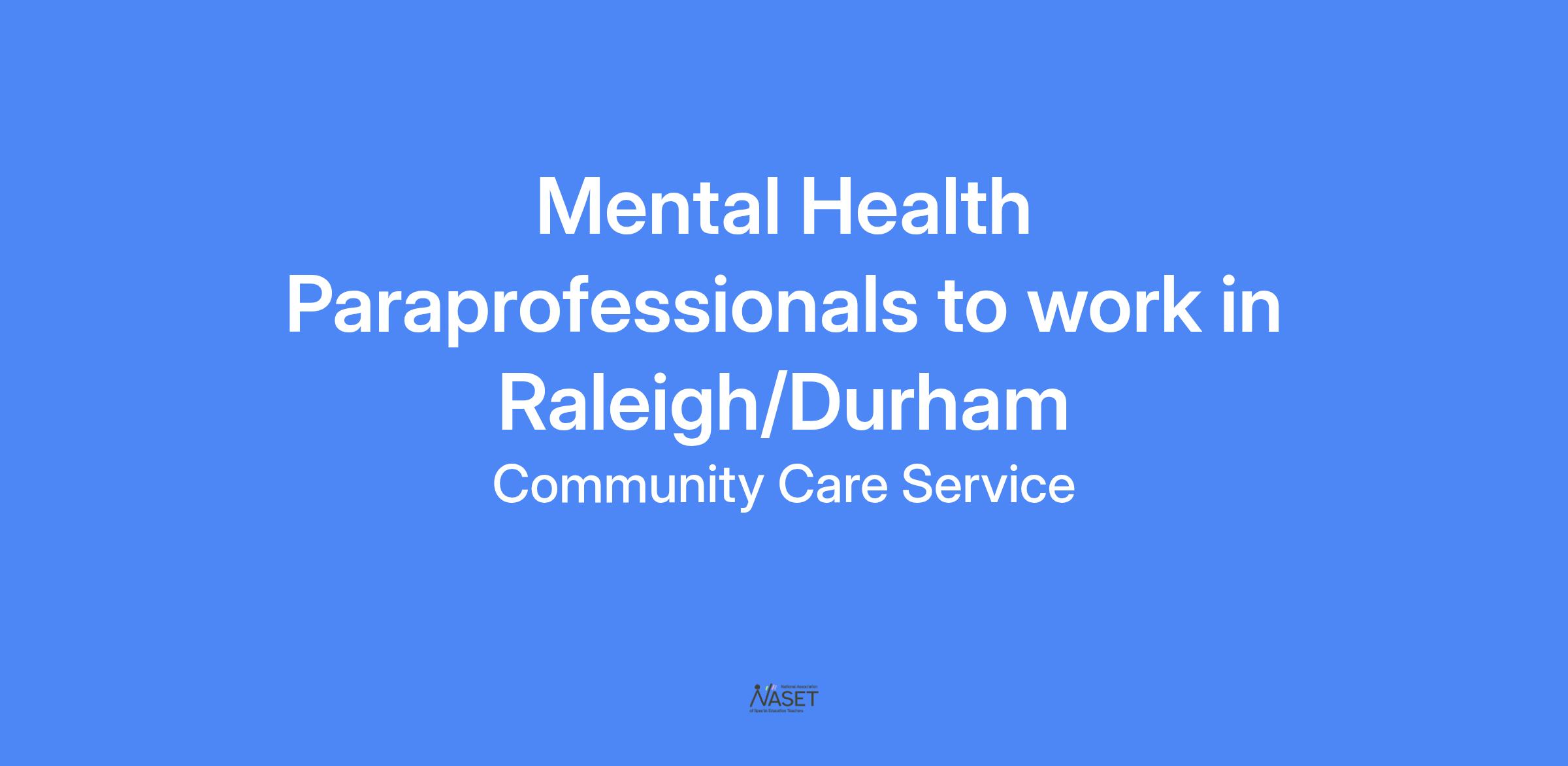 Mental Health Agency now hiring Full and Part time paraprofessionals to work with consumers with their activities of daily living.