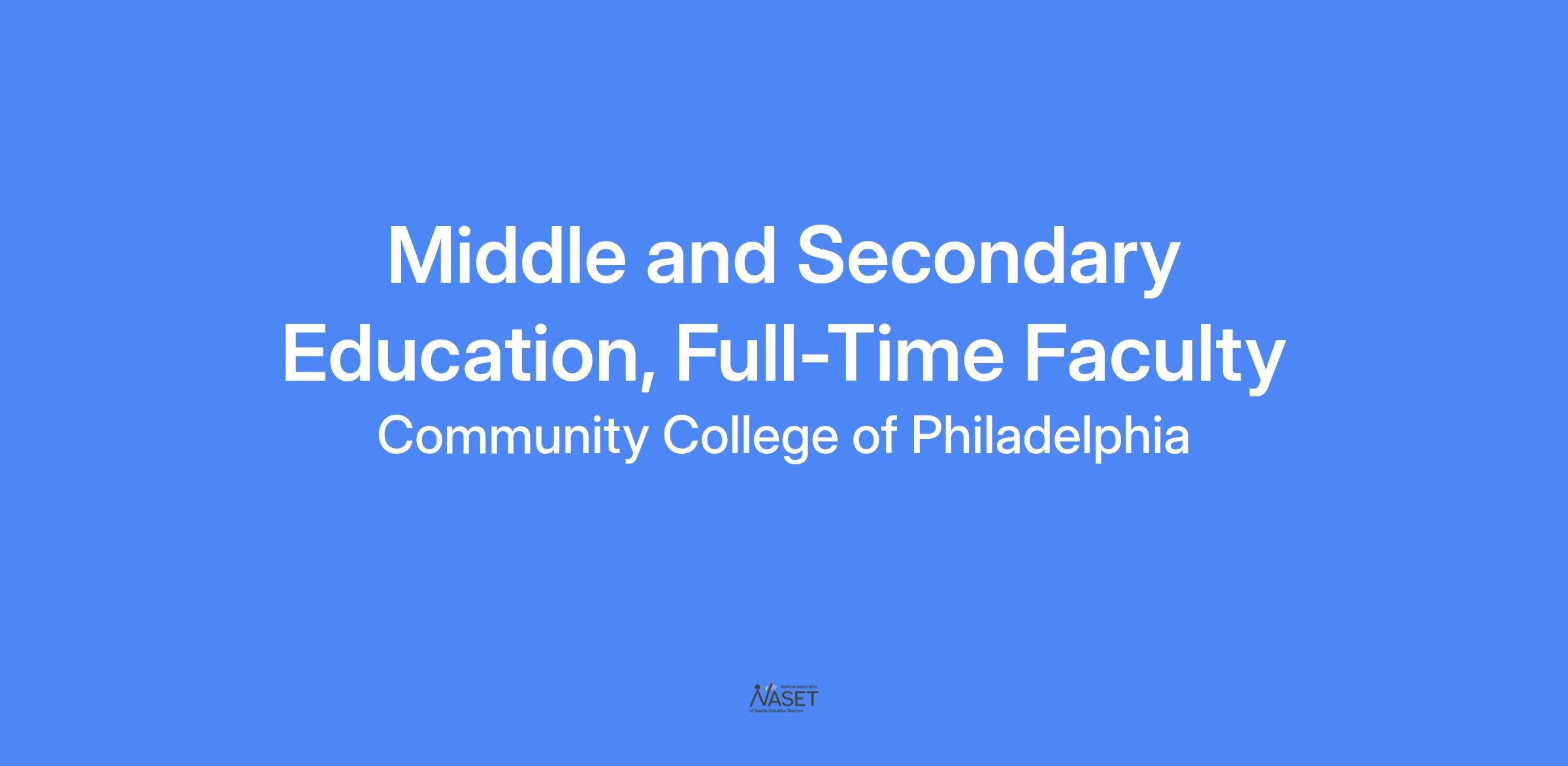 Position Title | Middle and Secondary Education, Full-Time Faculty |