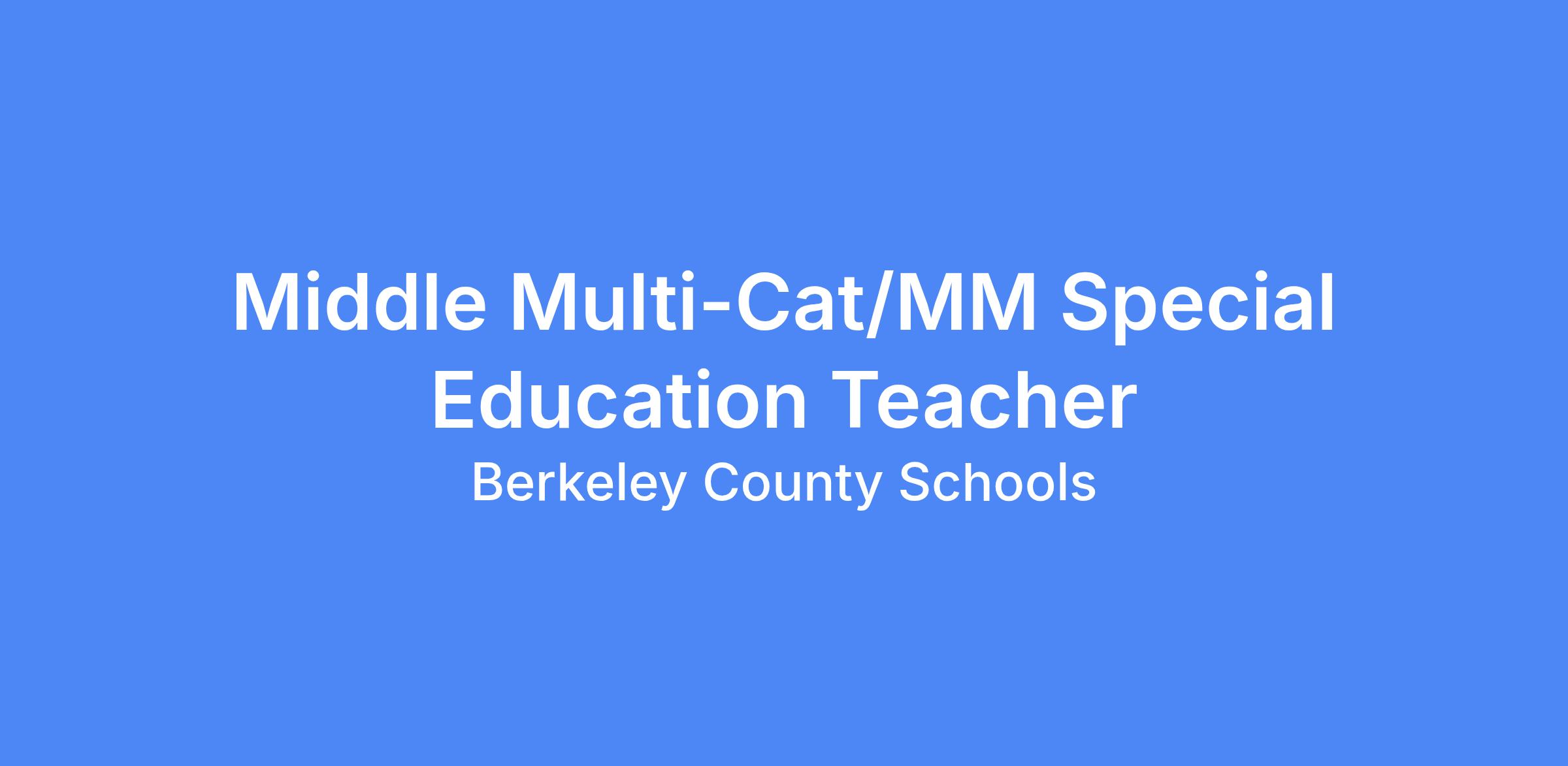 Berkeley County Schools seeks qualified applicants for a Multi-Categorical Special Education Teacher.