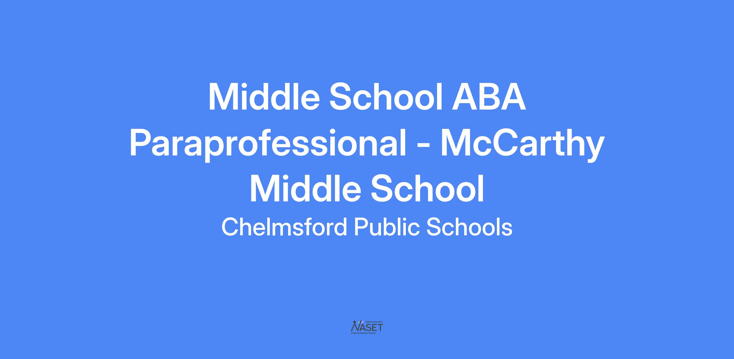 Description: The successful candidate will work with middle school students with to support them in academic, social, and communication tasks in the school setting. Follow and implement curriculum and behavioral support plans. Collect data consistently for students assigned. Interest in working with students with exceptionalities is required and work with an Applied Behavior Analysis approach is preferred. Work as part of an interdisciplinary team of teachers, BCBA, and related service providers.