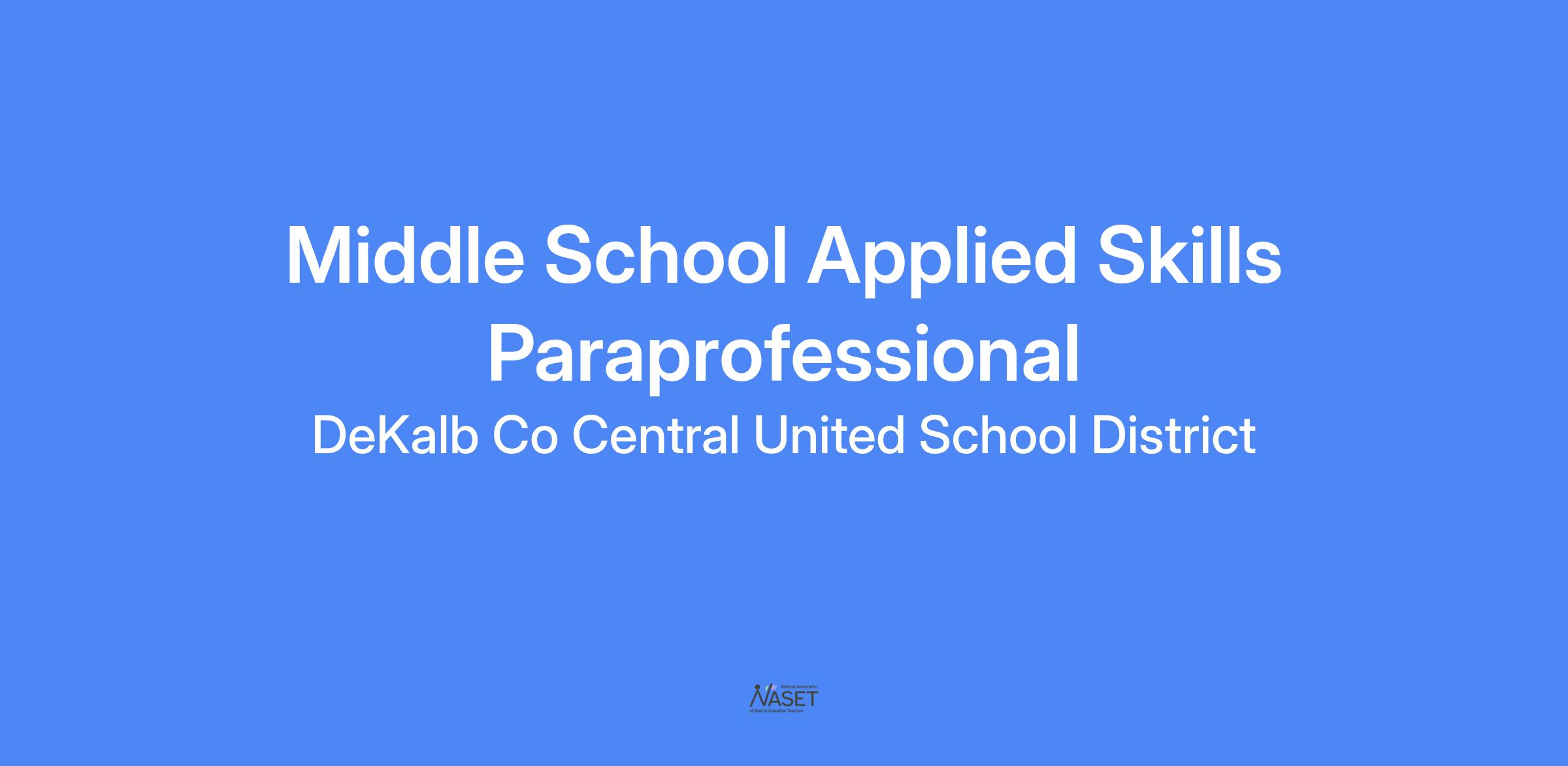 DeKalb County Central United School District is committed to preparing students today for the world of tomorrow. Our mission is to develop students as critical thinkers, communicators, and collaborators who can adapt and persevere with empathy and integrity in an ever-changing world. Every member of our team is a valuable resource in this pursuit of excellence, and we are currently seeking an Applied Skills Paraprofessional at DeKalb Middle School!