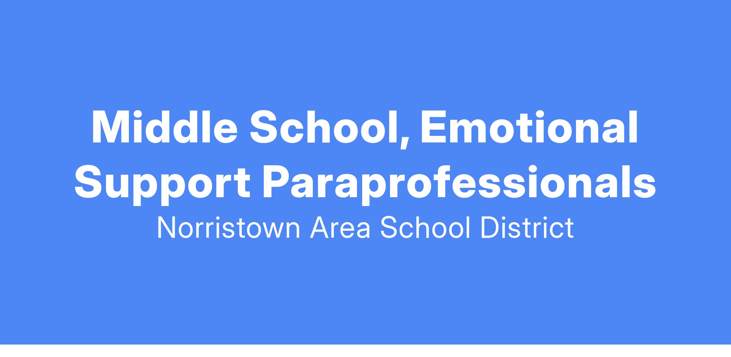 Vacancies will exist for Emotional Support Paraprofessionals within the Norristown Area School District at the Middle School Level for the 2025-2026 school year.