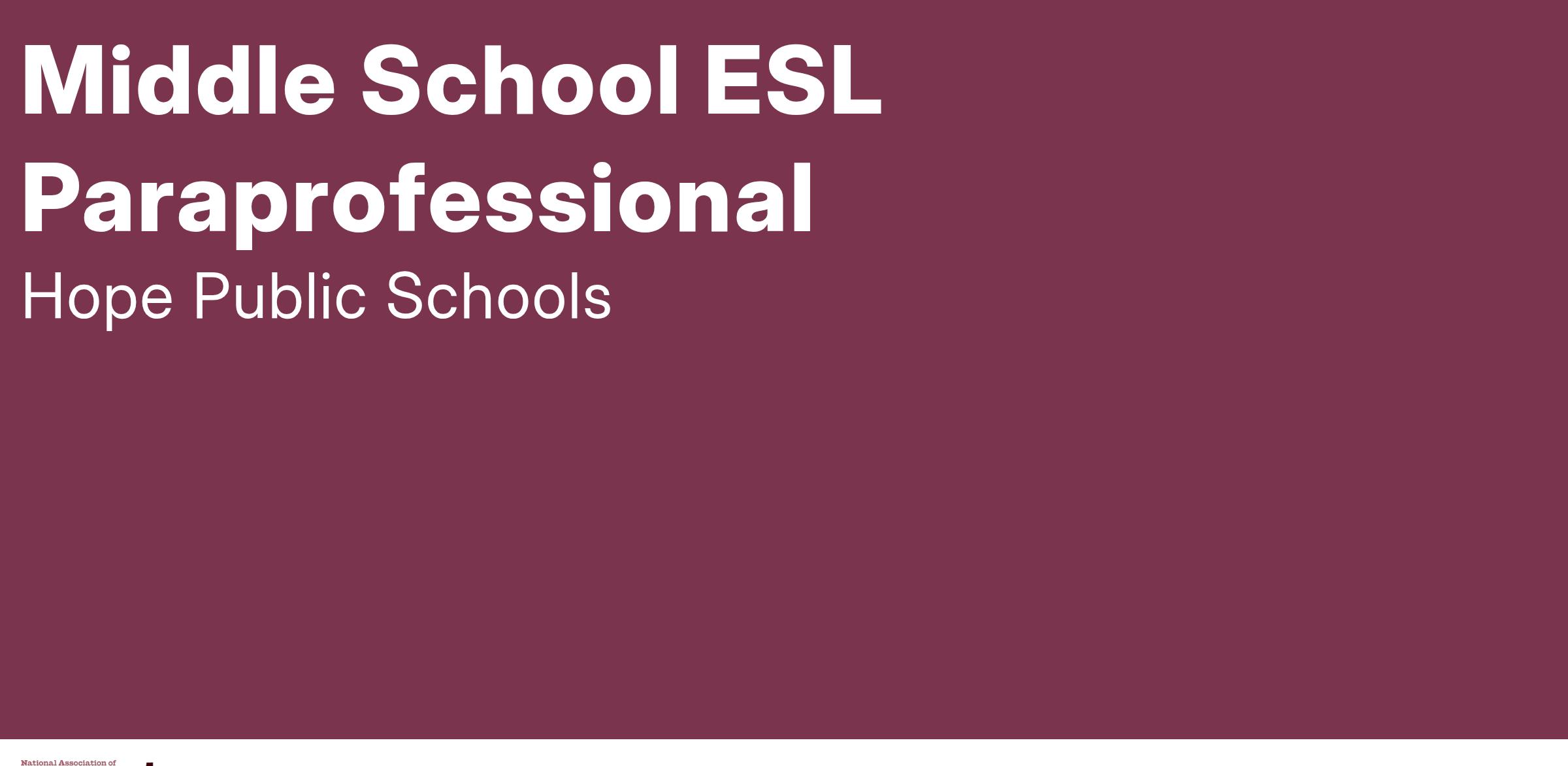 Job Posted: Middle School ESLvInstructional Paraprofessional