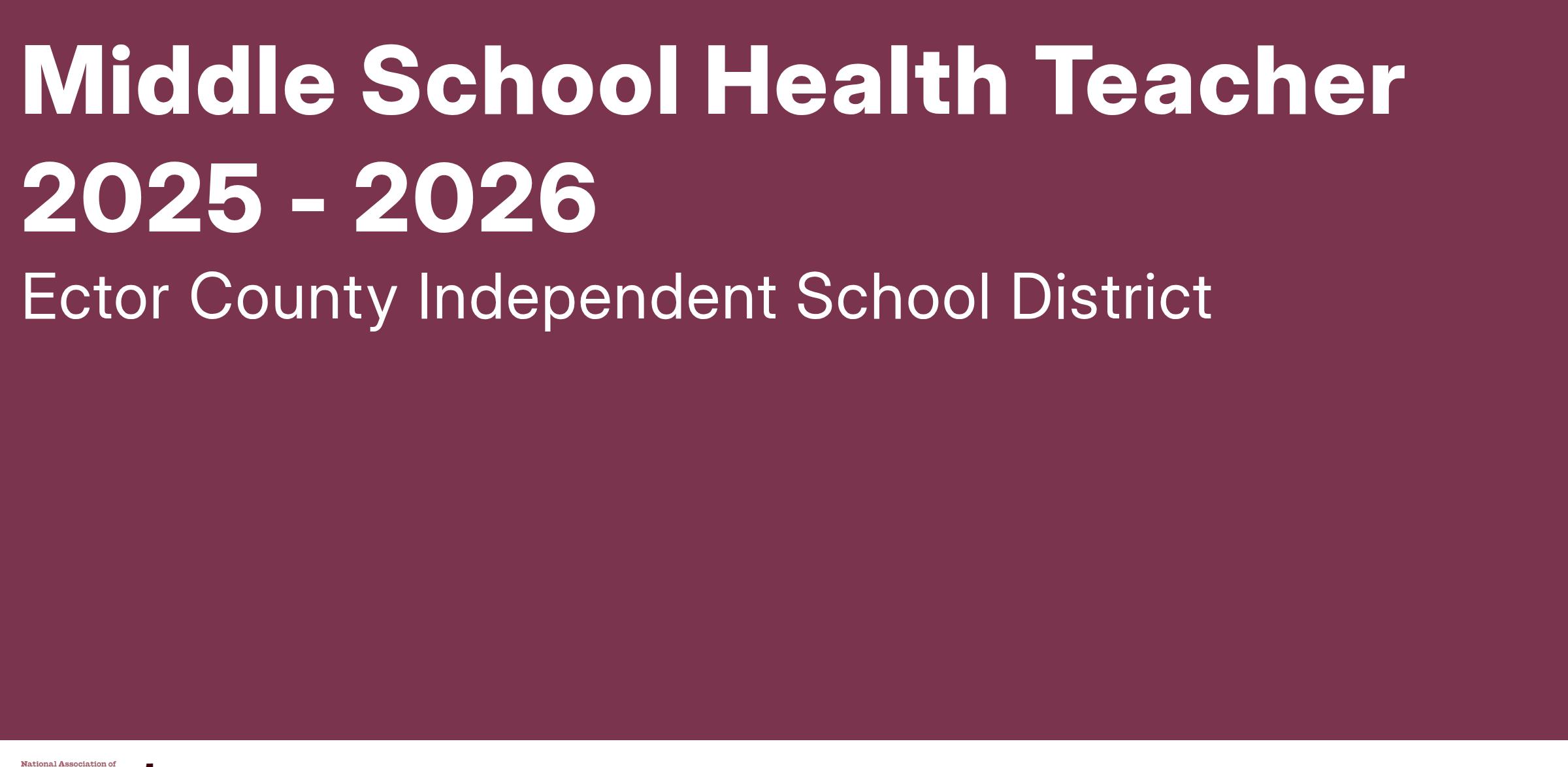 Middle School Health Teacher 2025 - 2026
