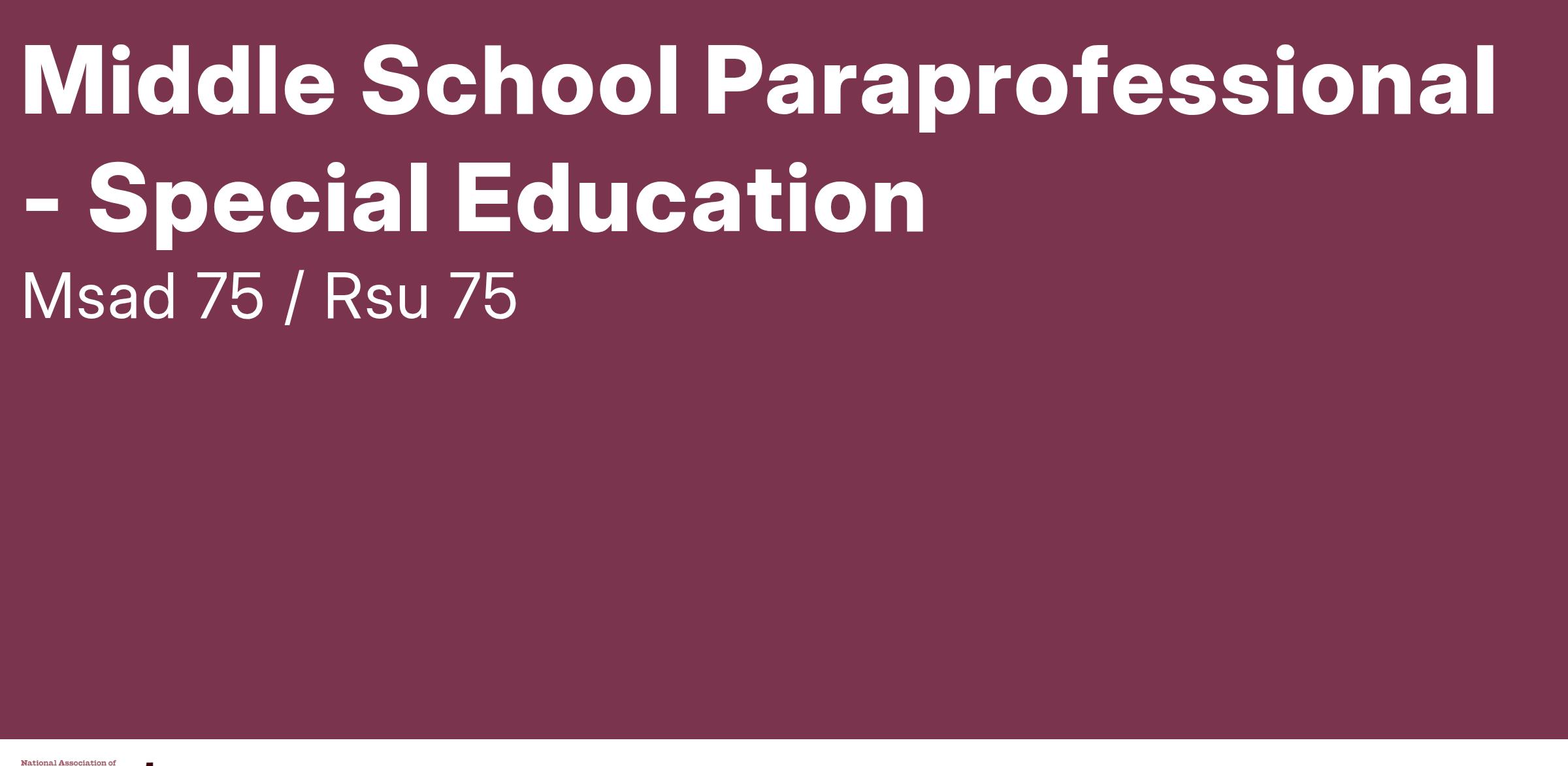 MSAD 75 is seeking a Special Education Paraprofessional at Mt. Ararat Middle School to join our vibrant educational community. Together, we can inspire the next generation of learners and leaders.