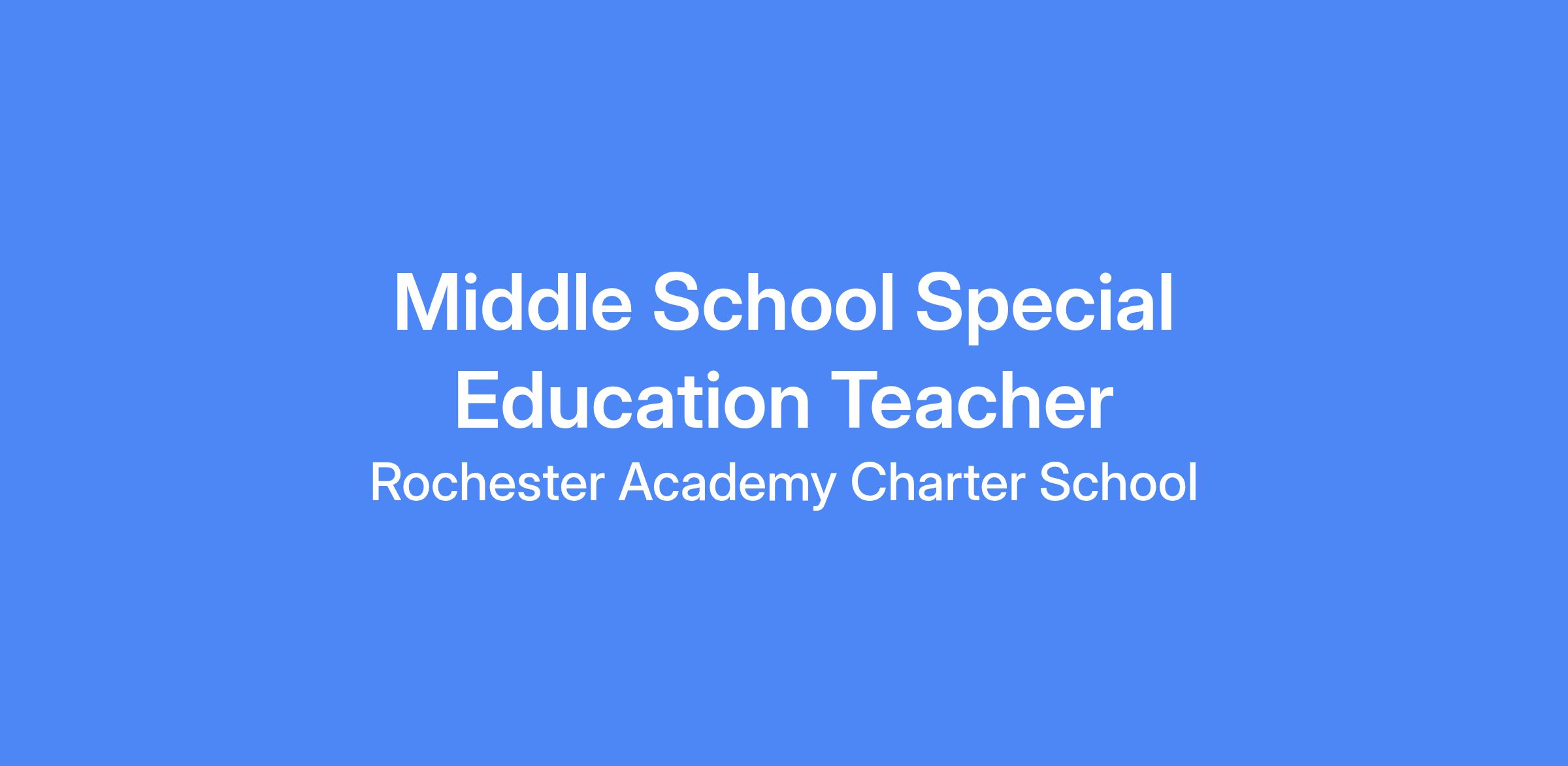 Rochester Academy Charter School (RACS) is currently seeking qualified candidates for the position of Middle School Special Education Teacher. This is a full-time contract position.