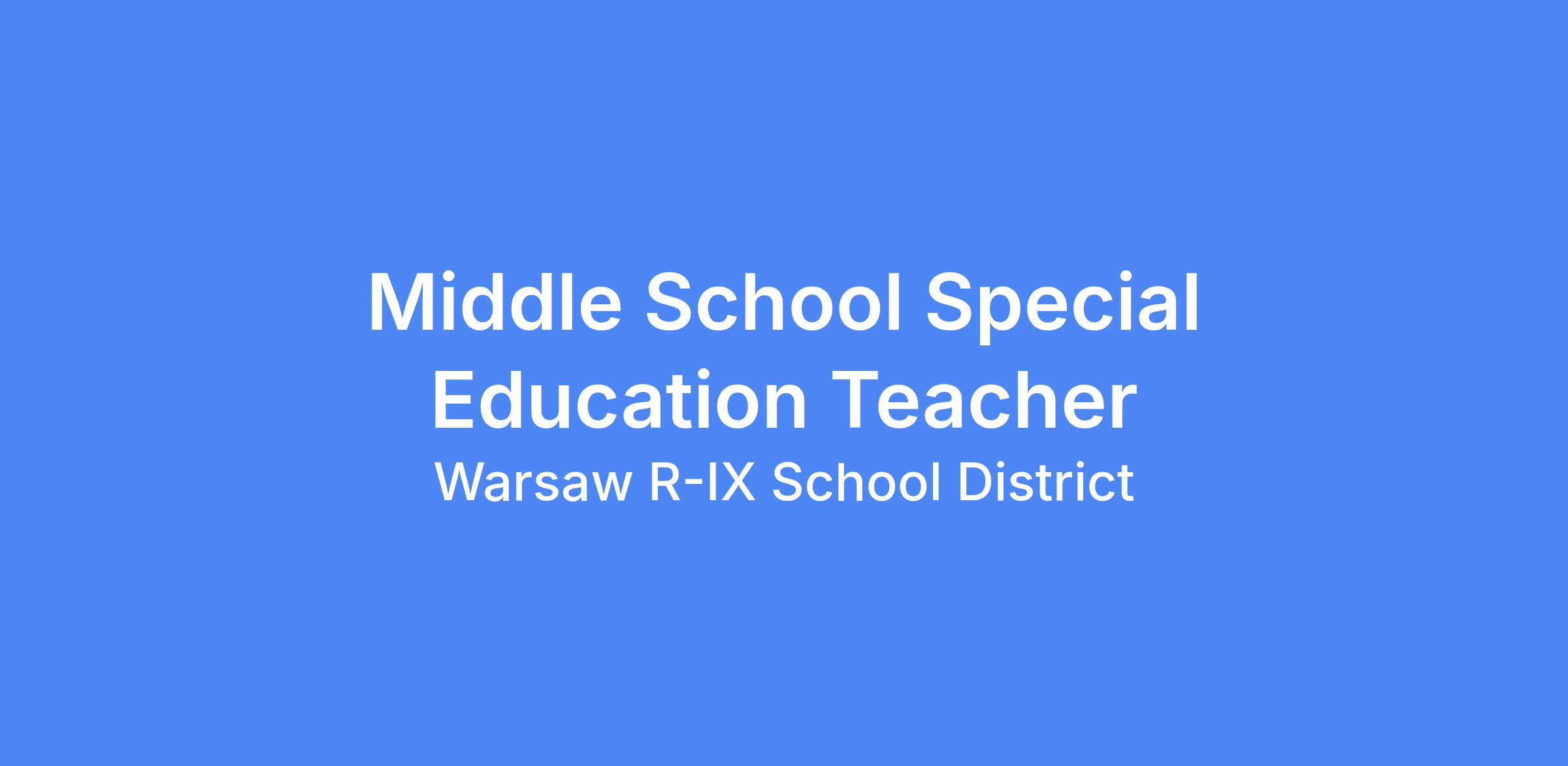 The Warsaw R-IX School District is seeking applicants for a Middle School Special Education Teacher for the 2026/2027 school year. The Warsaw School District operates under a four-day school week and offers a competitive starting salary and benefits package. Applicants must possess a current and valid certification from the Missouri Department of Elementary and Secondary Education.