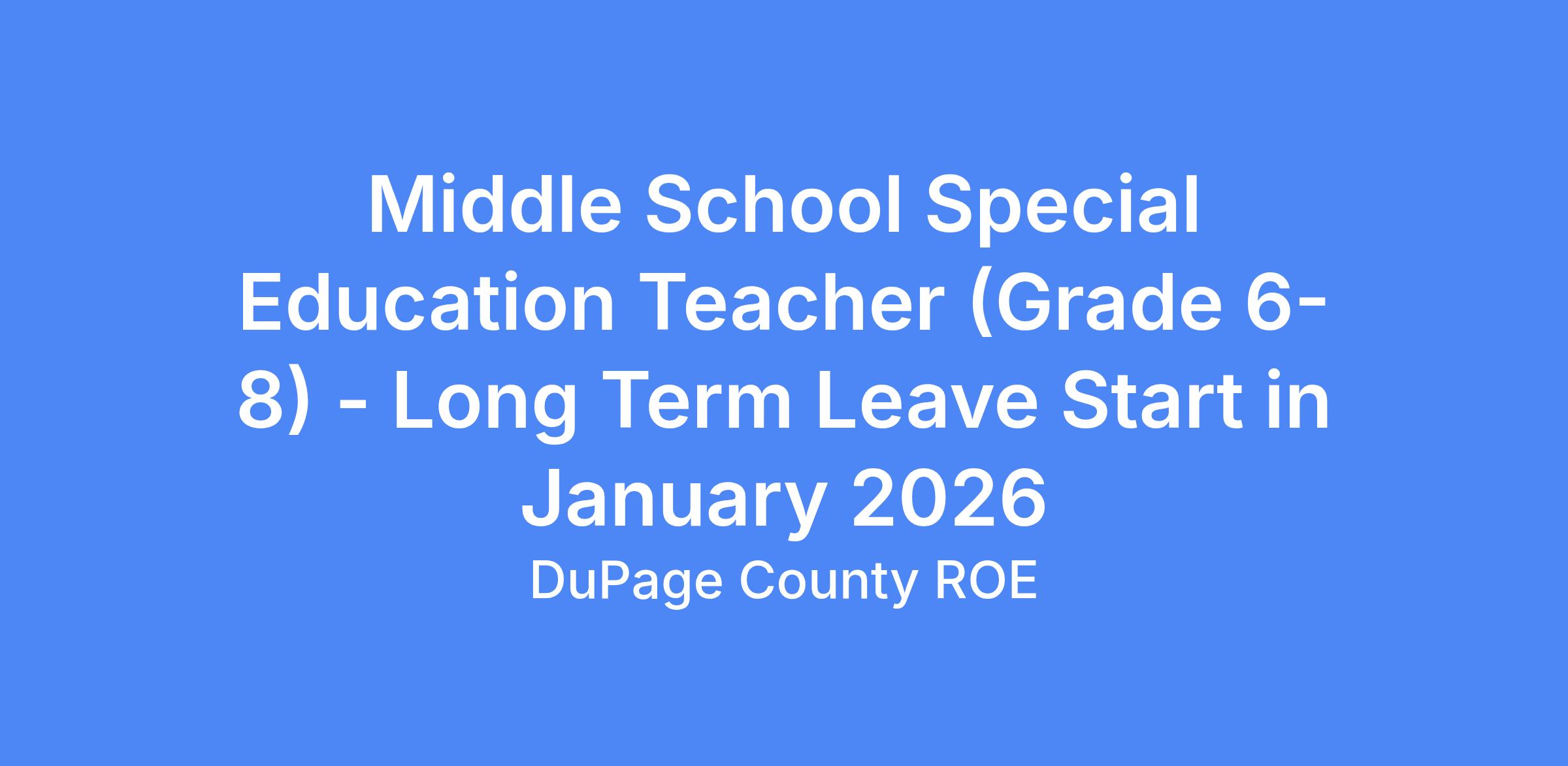 Middle School Special Education Teacher (Grade 6-8) - Long Term Leave Start in January 2026