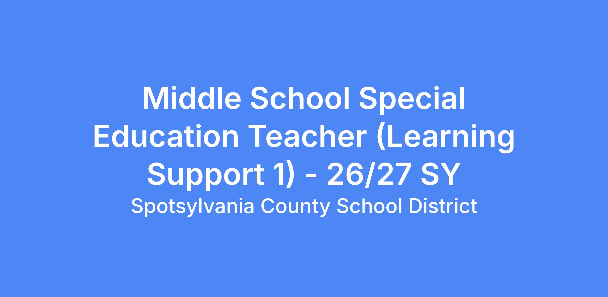 Middle School Special Education Teacher (Learning Support 1) - 26/27 SY