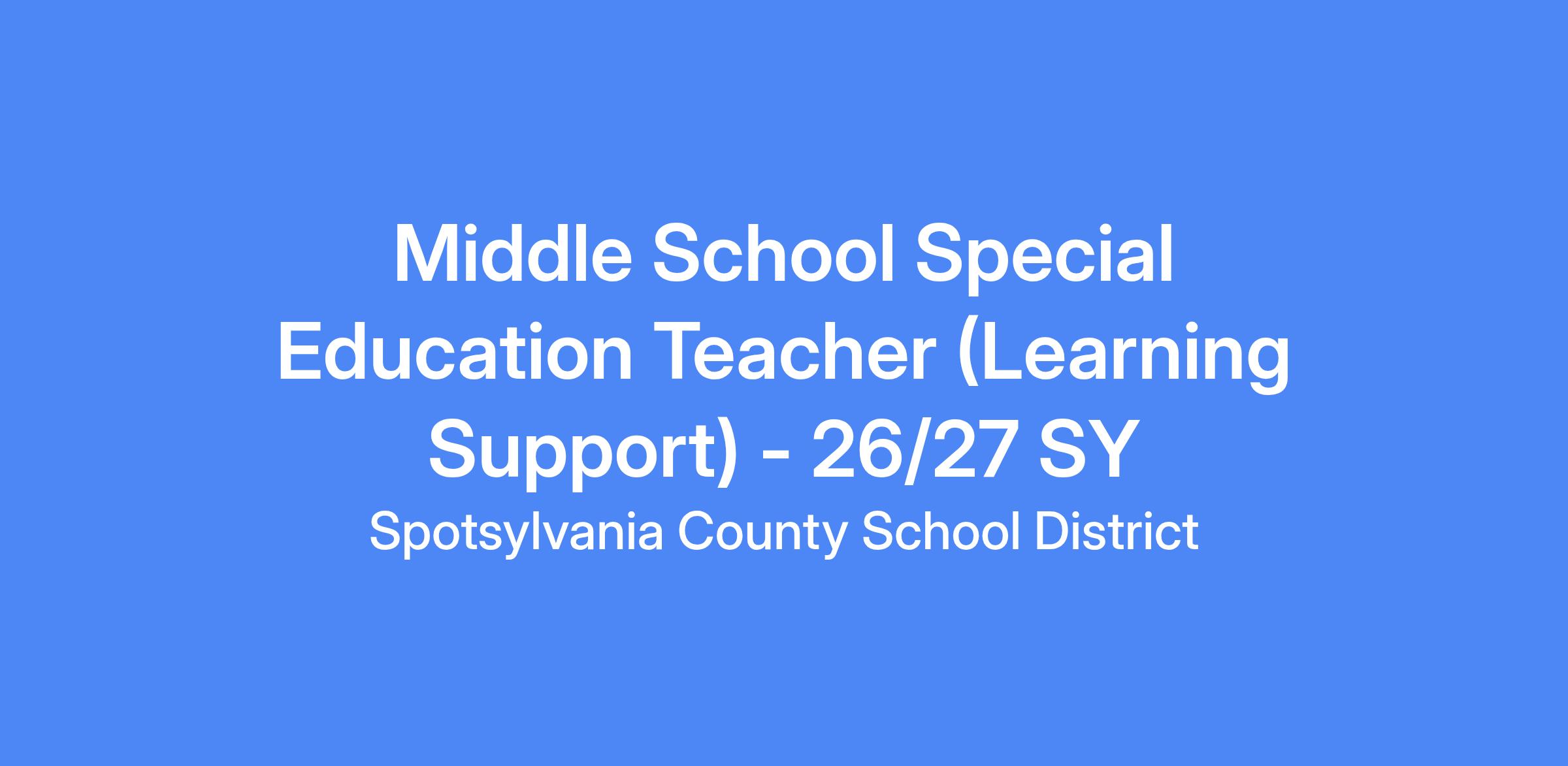Employment Terms: Employment may be offered as a 10-Month (200 Day) contract, at a minimum of 7.5 hours worked per day. This position is evaluated annually. Additional compensation awarded for credits earned toward advanced degrees. New employees to Spotsylvania County will be compensated for up to 20 years of experience.