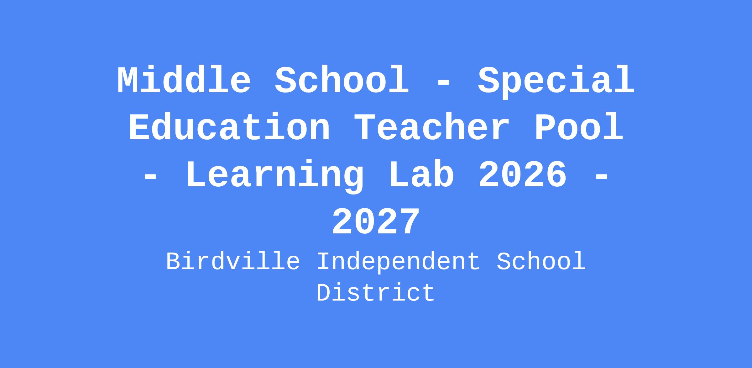 Middle School - Special Education Teacher Pool - Learning Lab 2026 - 2027