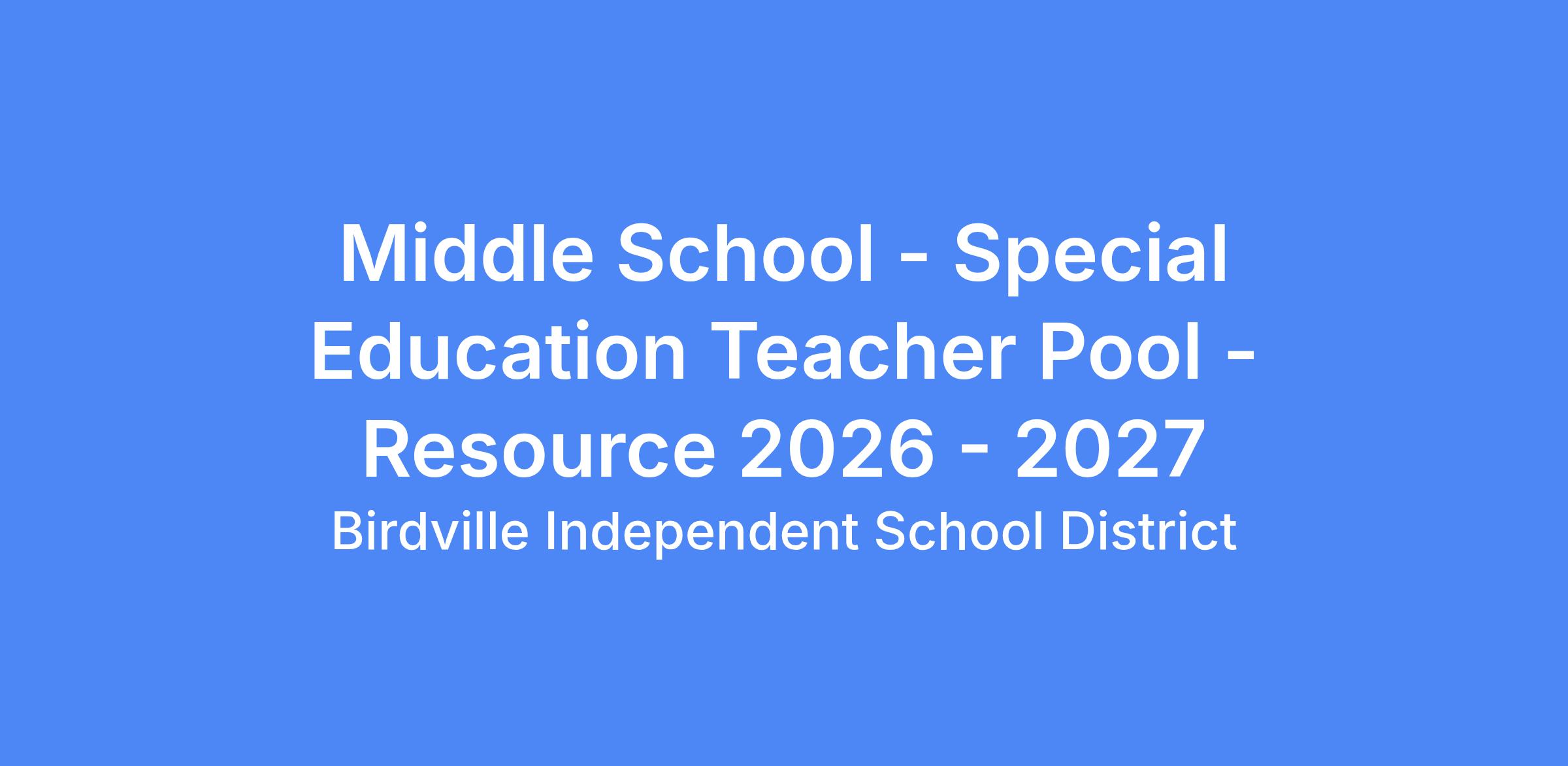 Middle School - Special Education Teacher Pool - Resource 2026 - 2027