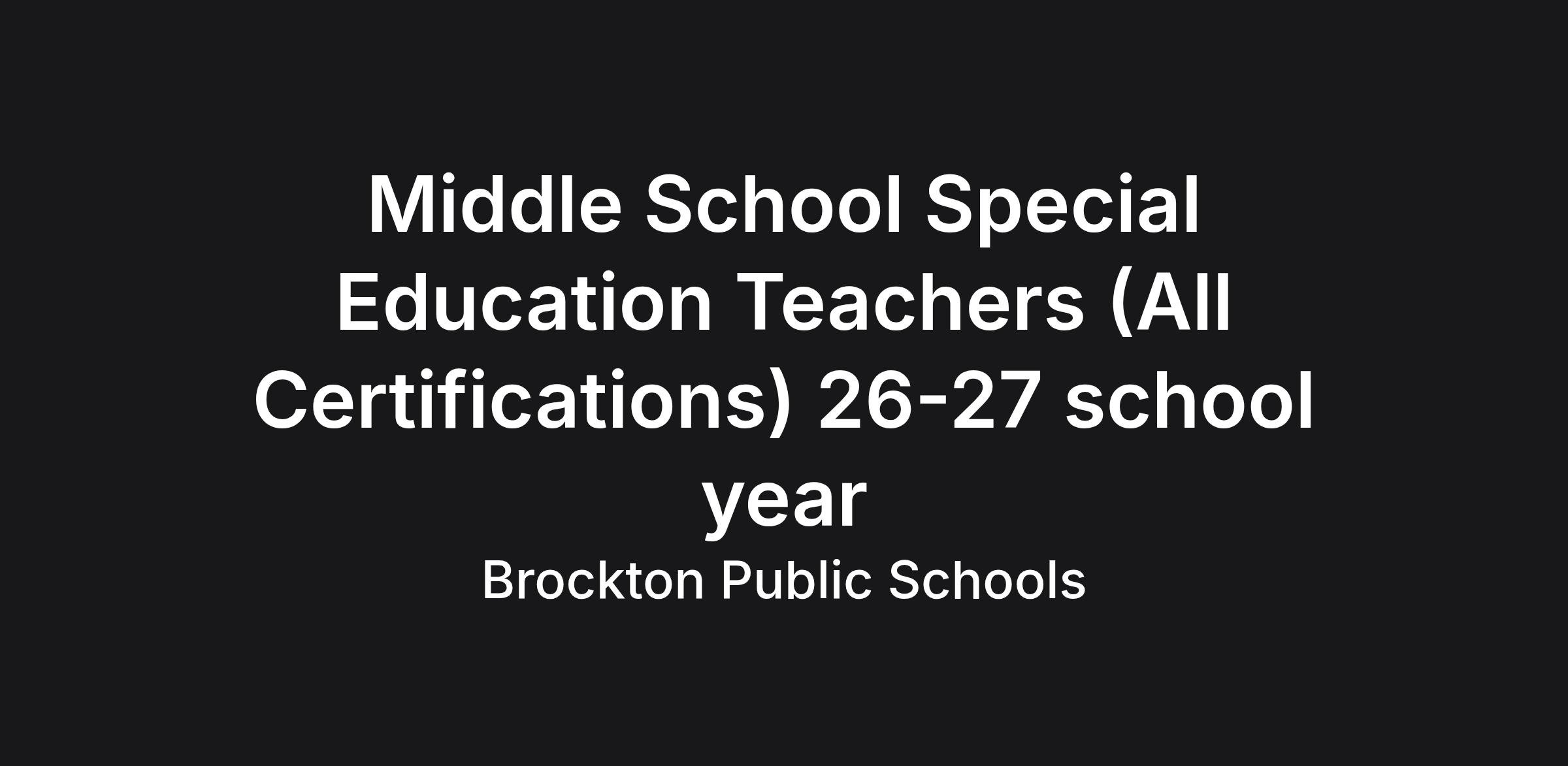 Special Education Teacher for Moderate Special Needs and Severe Disabilities within the Brockton Public Schools at the middle school level.