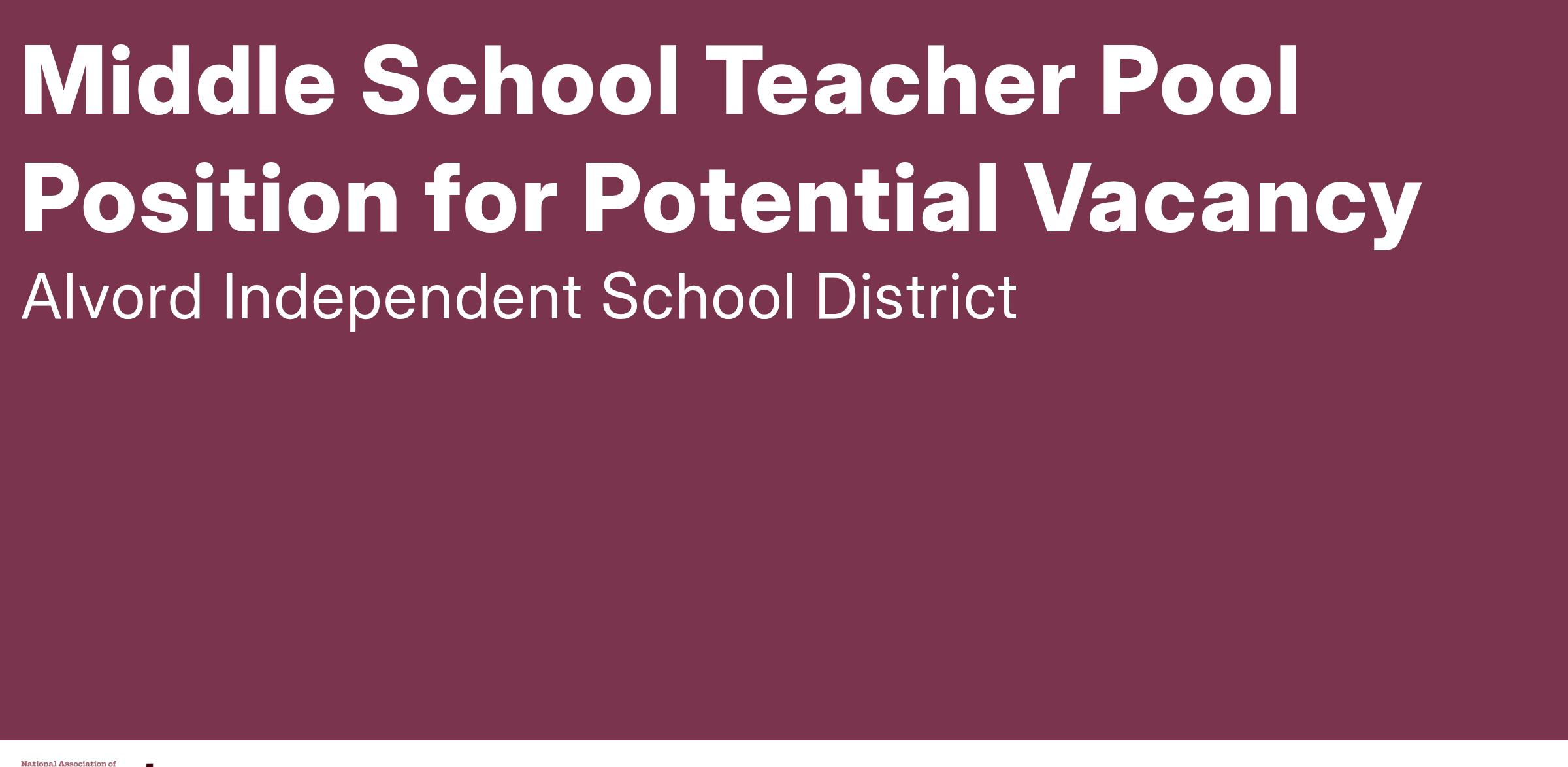 This is an opportunity to join an amazing team. Successful candidates will care deeply about the students they serve and the colleagues they work with. Alvord ISD staff members model a strong work ethic and have high expectations for themselves and their students. Employees in Alvord ISD enjoy an employee friendly environment which includes strong administrative support, small class sizes, unusual autonomy, and a casual professional employee dress code.