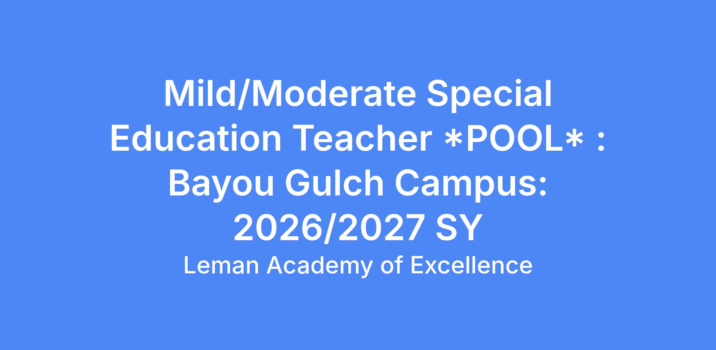 Mild/Moderate Special Education Teacher *POOL* :Bayou Gulch Campus: 2026/2027 SY