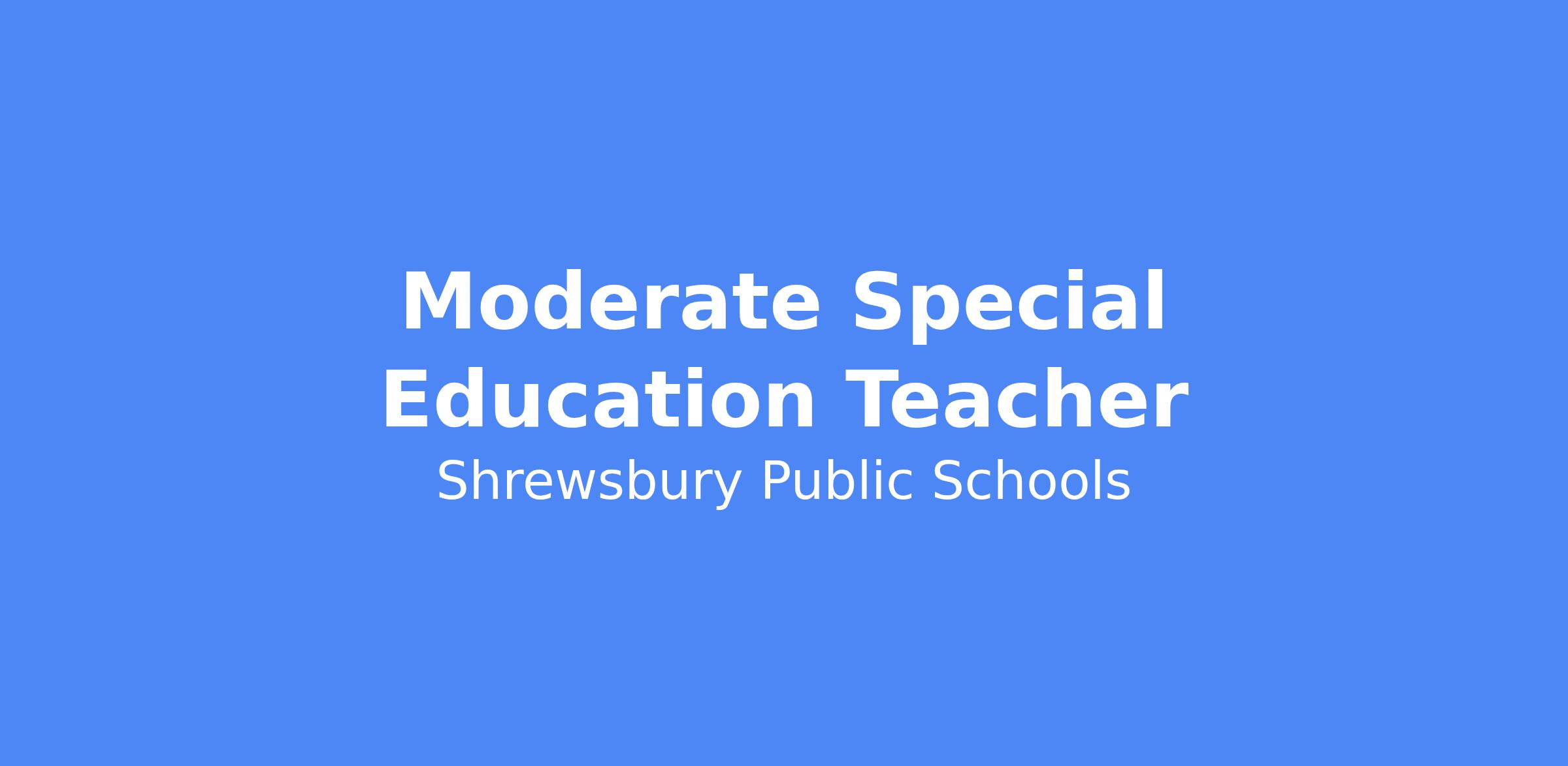 Shrewsbury Public Schools is currently accepting applications for a full-time Moderate Special Education Teacher for Oak Middle School.