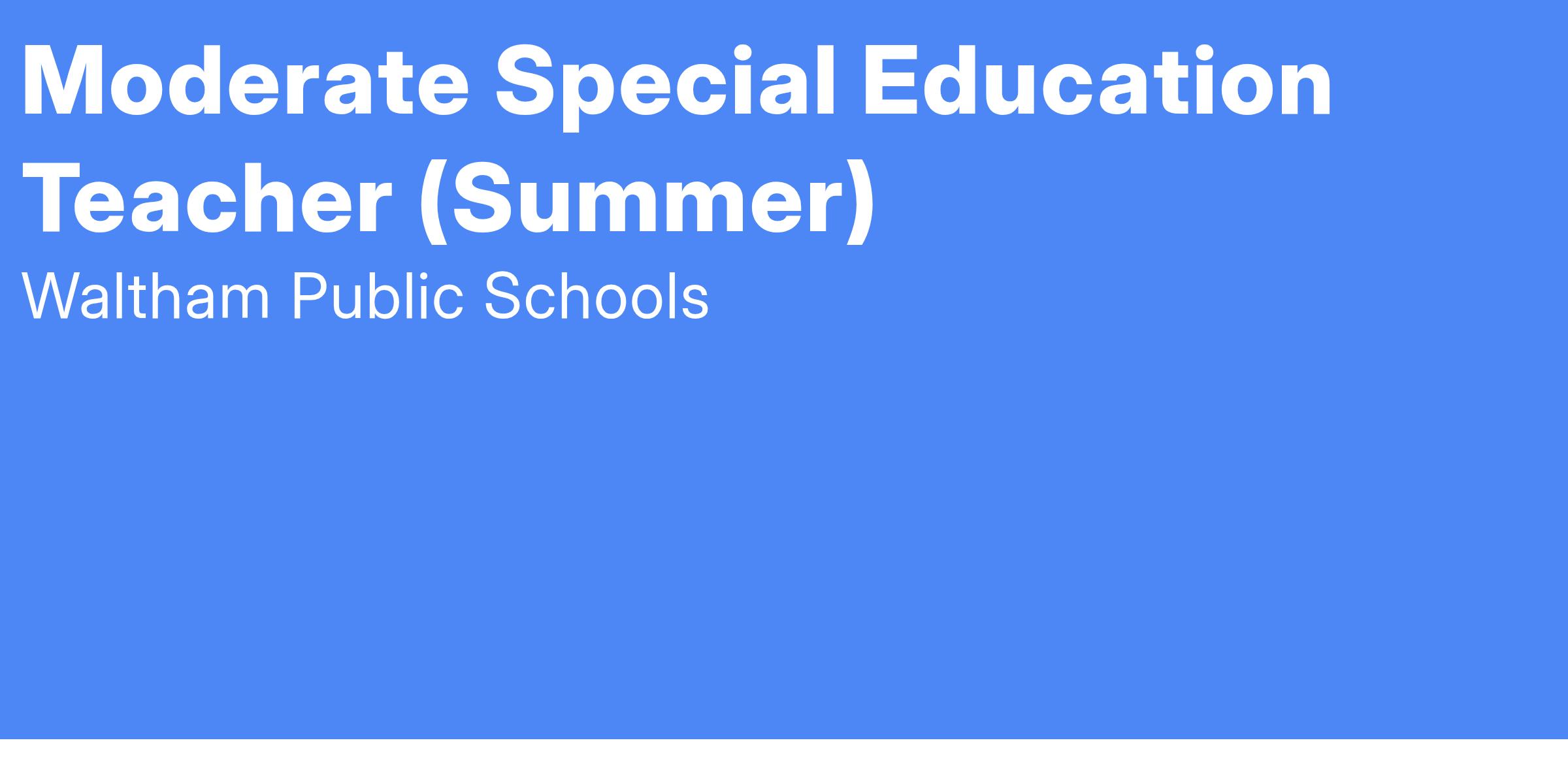 - Licensure from the Massachusetts Department of Education in Moderate Disabilities, 6-12.