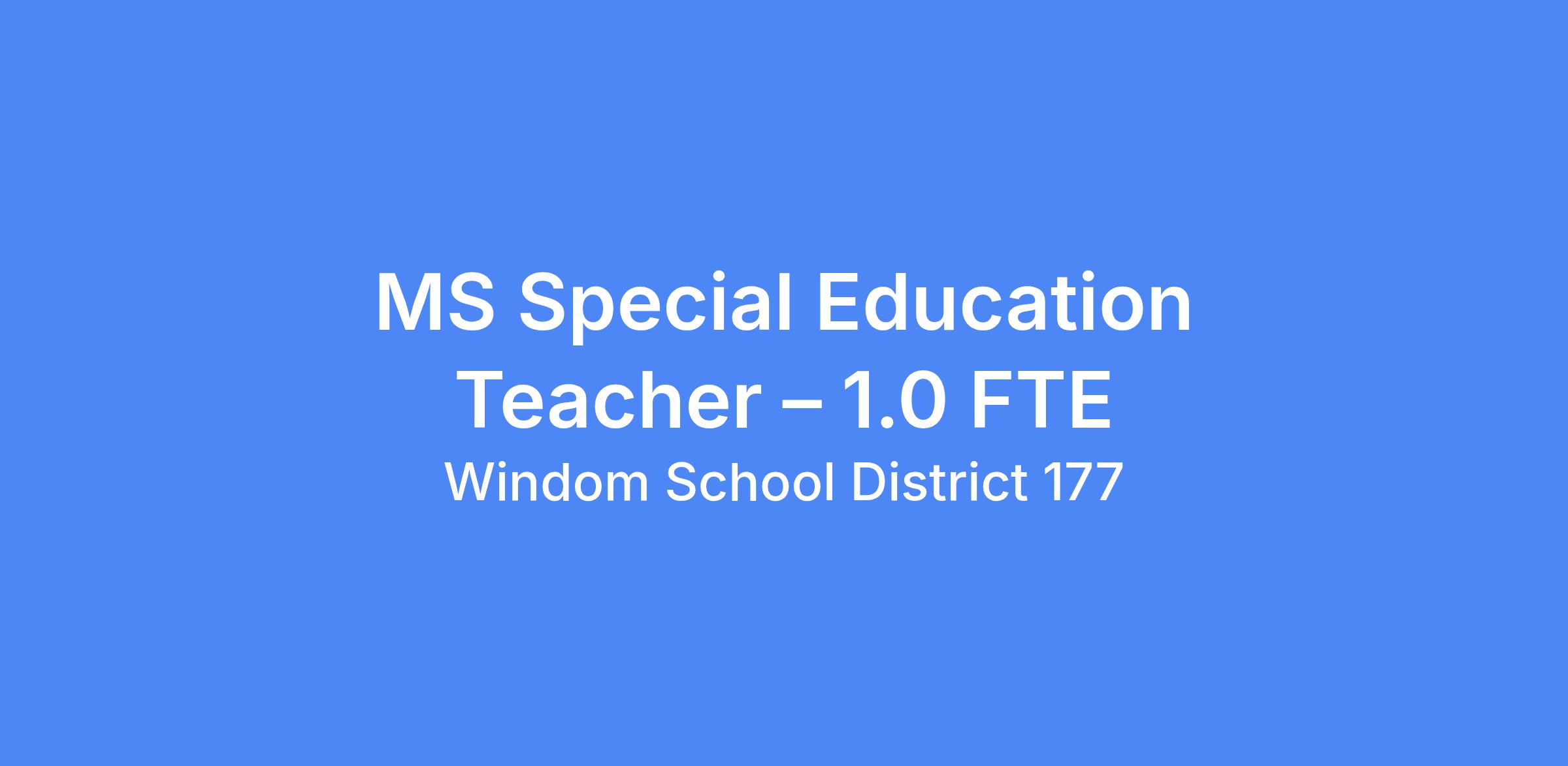 Special Education Teacher � 1.0 FTE
