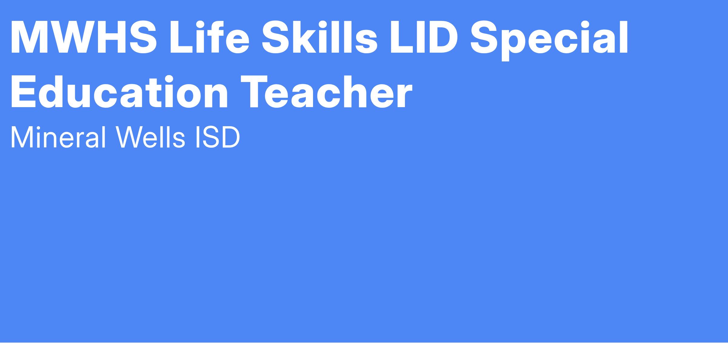 MWHS Life Skills LID Special Education Teacher
