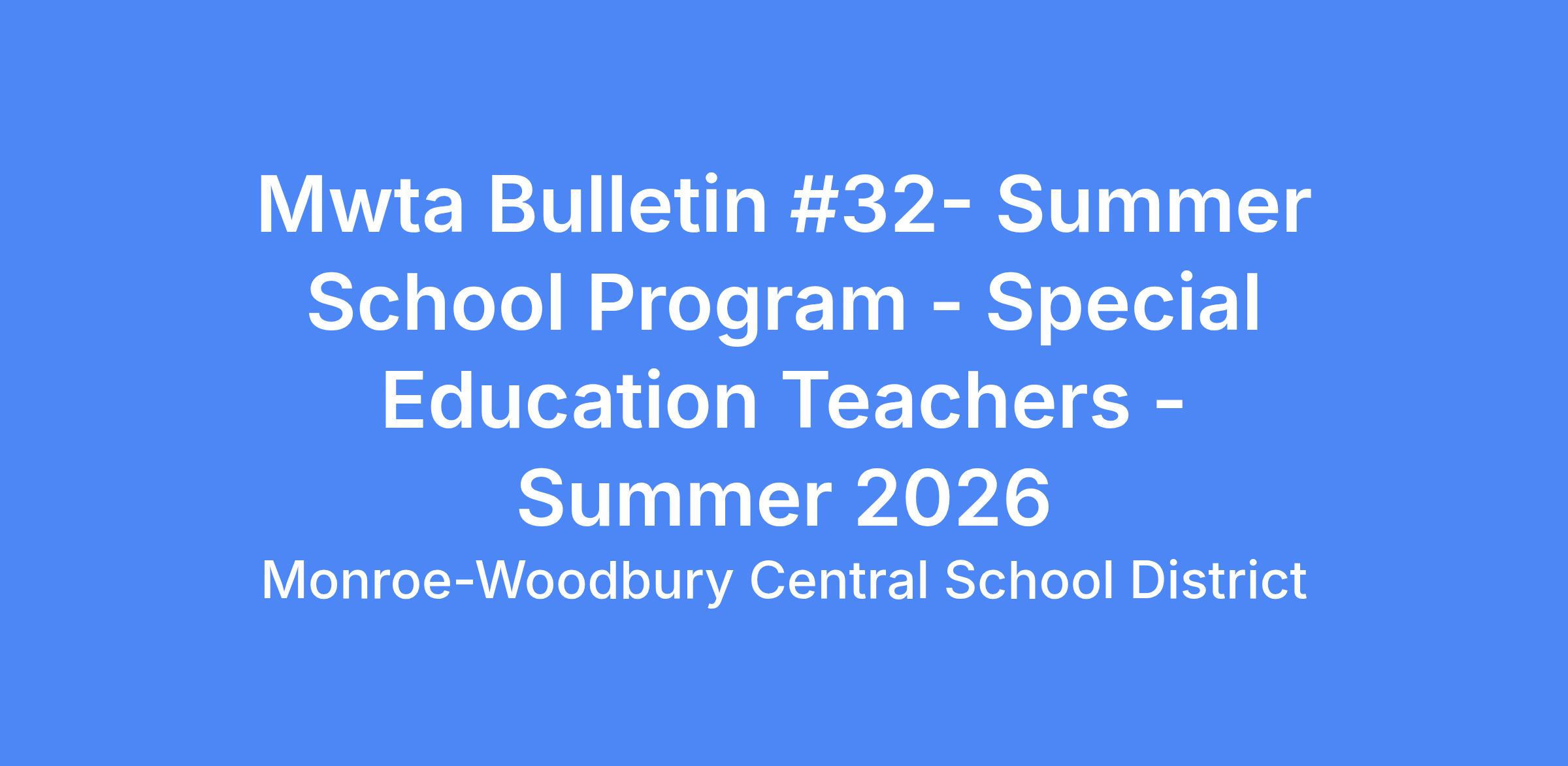 MWTA BULLETIN #32- SUMMER SCHOOL PROGRAM - SPECIAL EDUCATION TEACHERS - SUMMER 2026