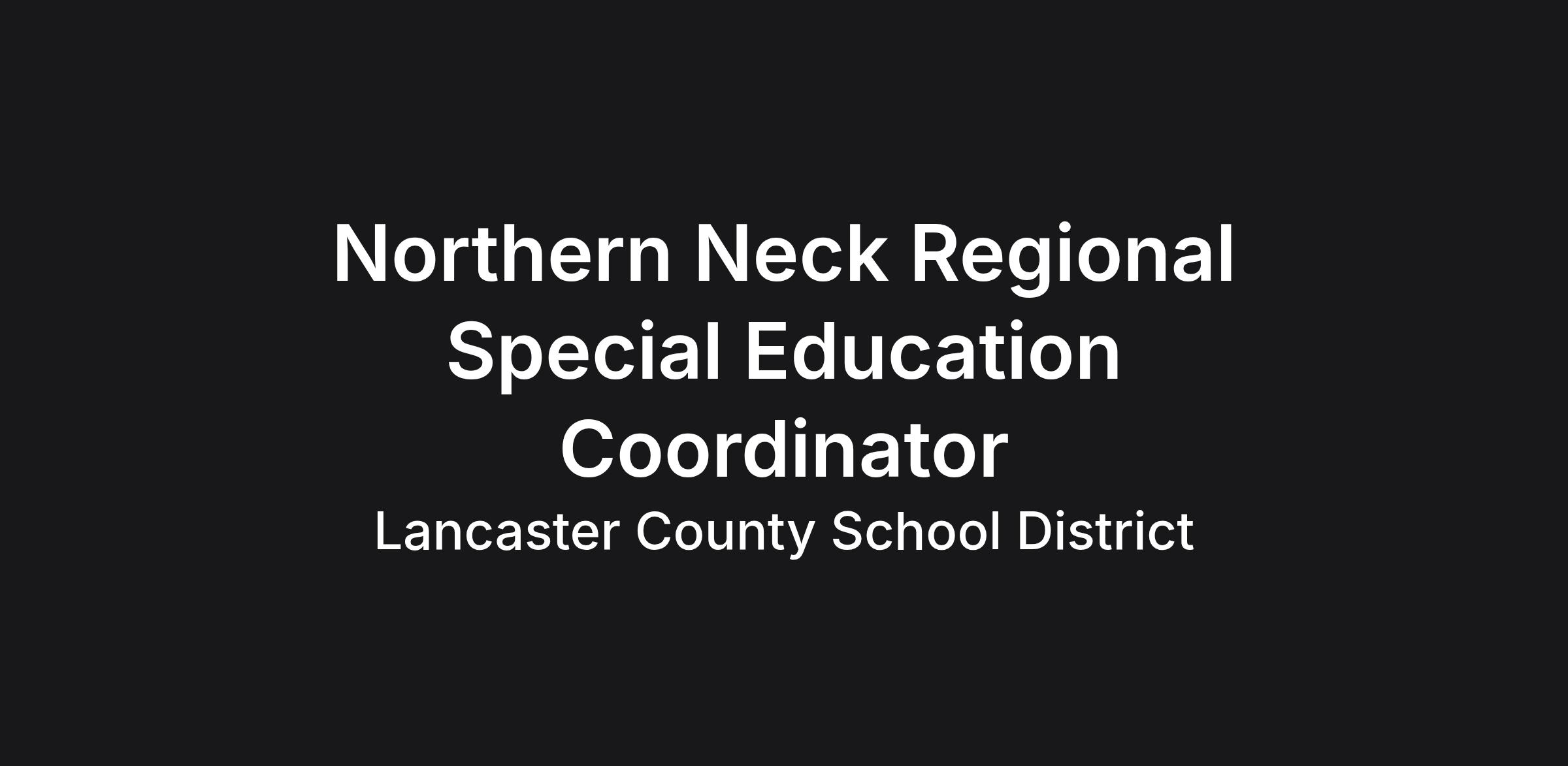 REPORTS TO: Executive Superintendent of the Northern Neck Regional Special Education Program