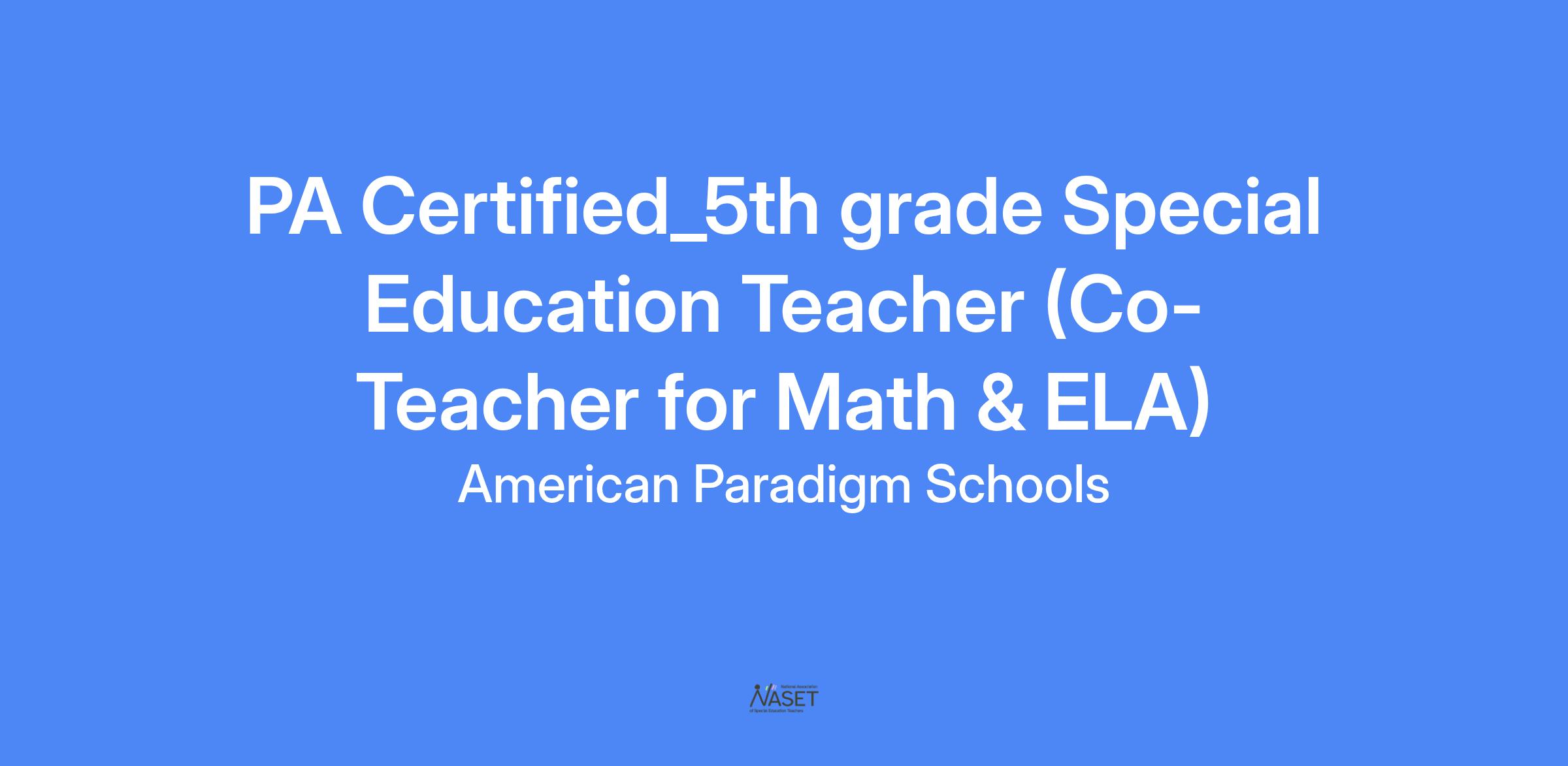 Position: 6th grade Special Education Teacher (Co-Teacher for Math & ELA)