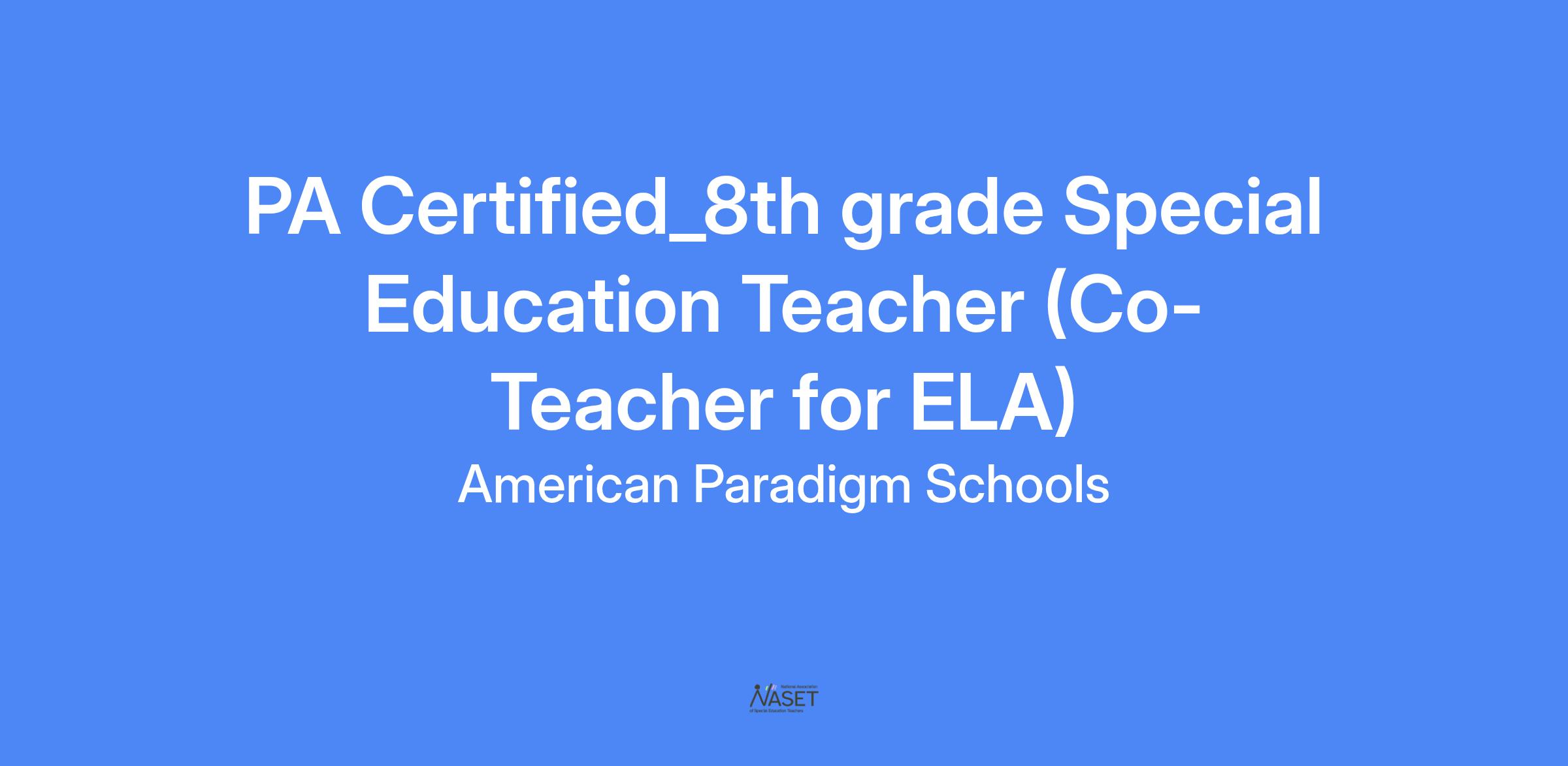 Position: 8th grade Special Education Teacher (Co-Teacher for ELA)