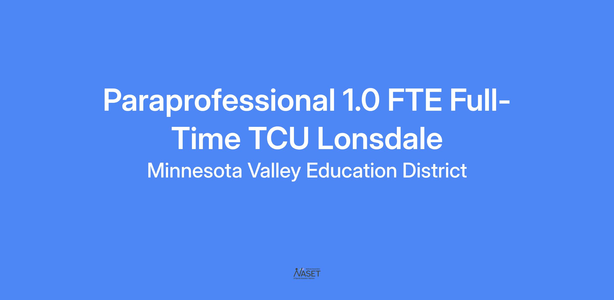POSITION: Special Education Paraprofessional 1.0 FTE