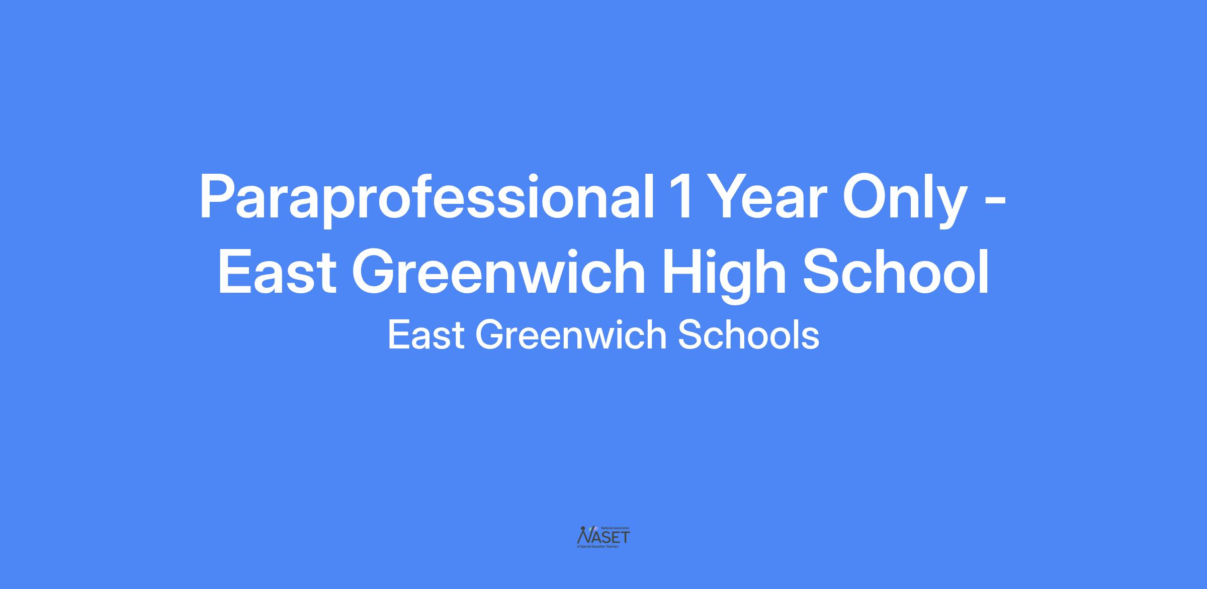 East Greenwich Public Schools is seeking applications for a Paraprofessional to work during the remainder of the 2025-2026 school year as a 1 Year only employee.