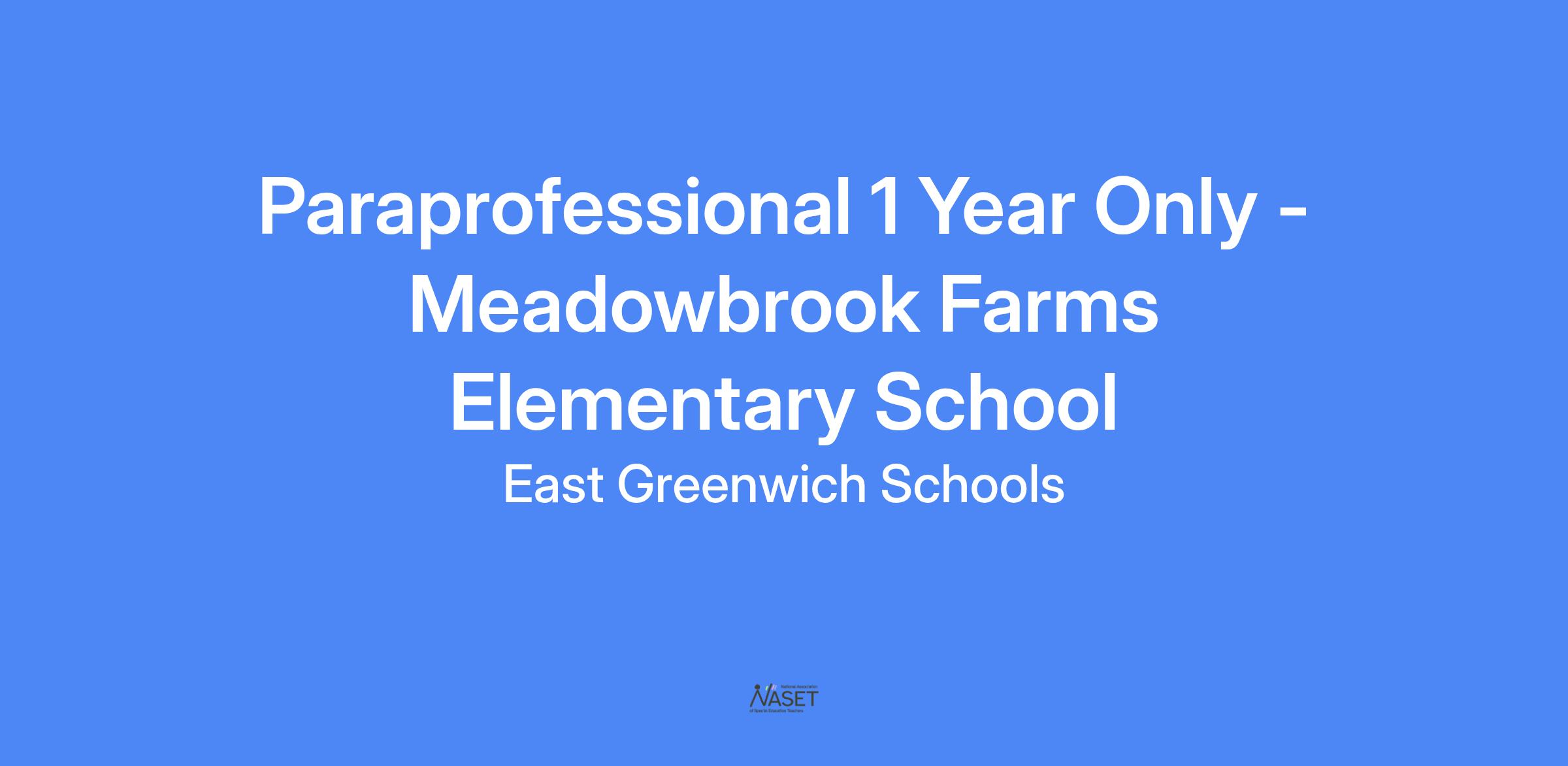 East Greenwich Public Schools is seeking applications for a Paraprofessional to work during the remainder of the 2025-2026 school year as a 1 Year only employee.