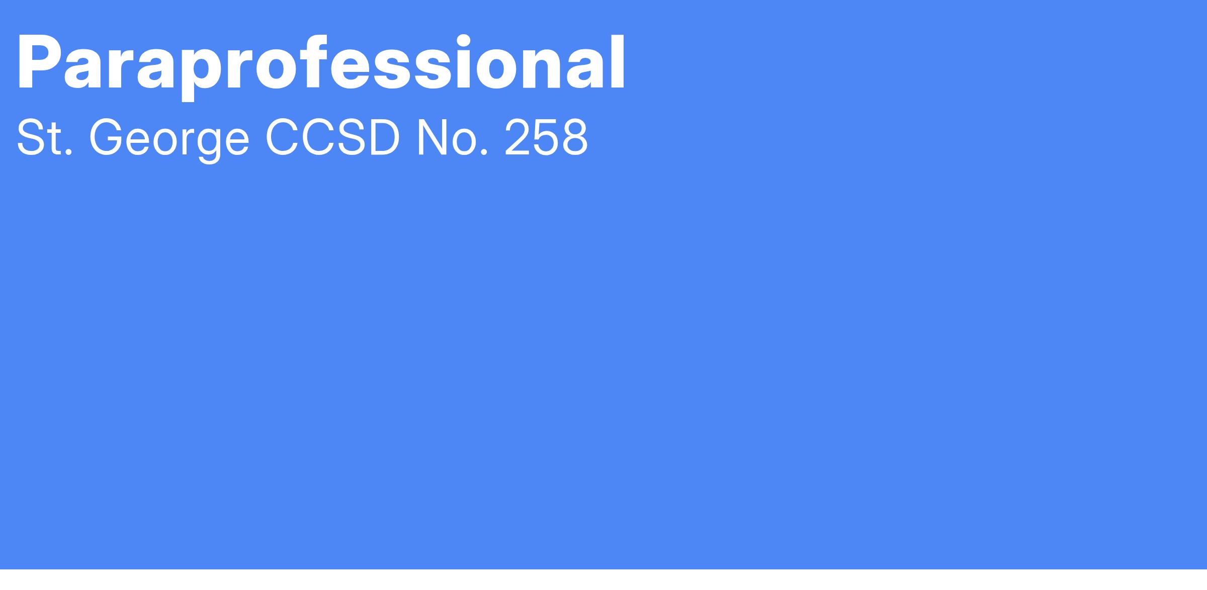 St. George CCSD No. 258, a PreK-8th grade public school district located in Bourbonnais, Illinois, is currently accepting applications for a FULL-TIME PARAPROFESSIONAL for the 2025-2026 school year.
