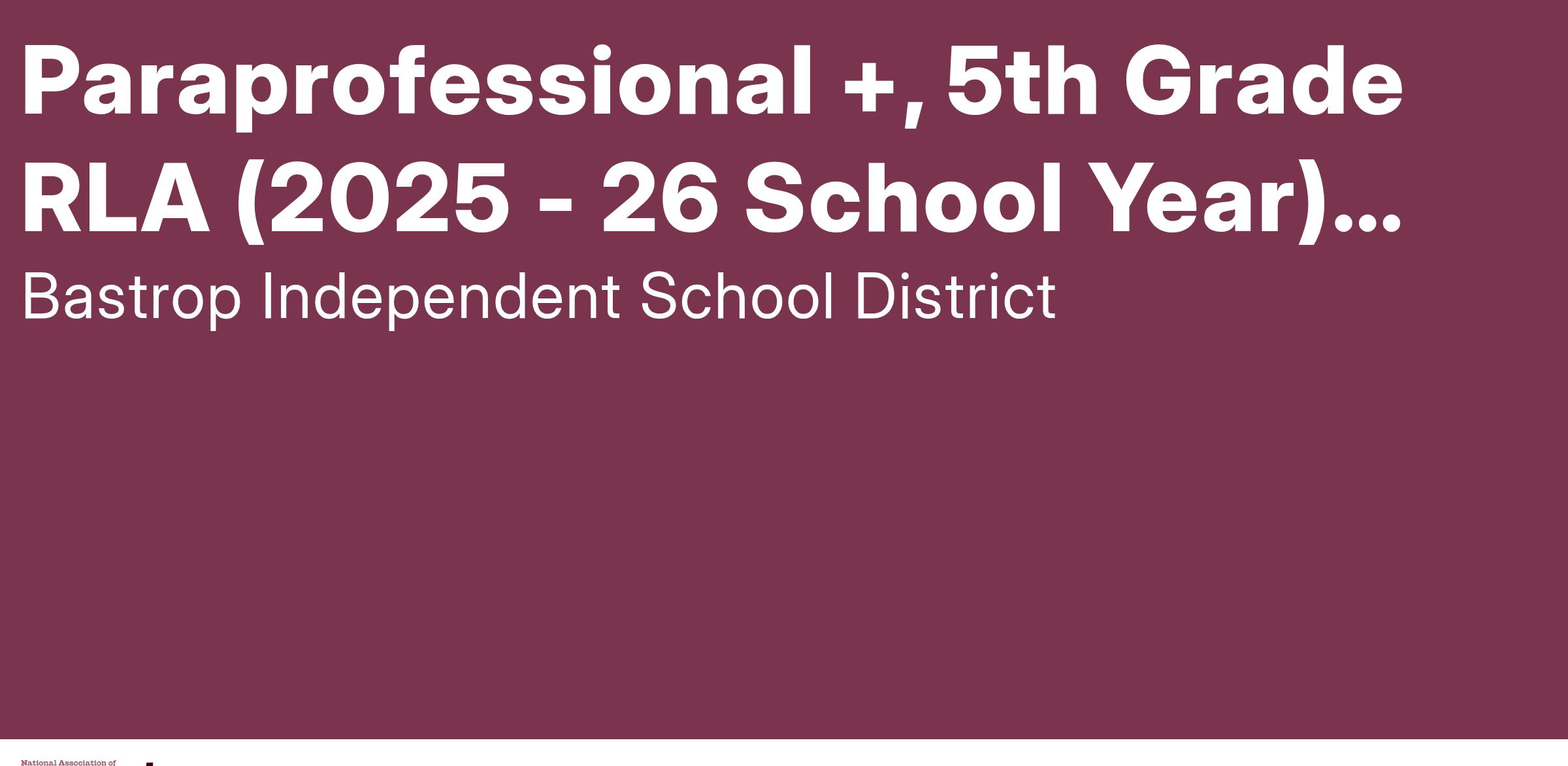 Paraprofessional +, 5th Grade RLA (2025 - 26 School Year) (8510)