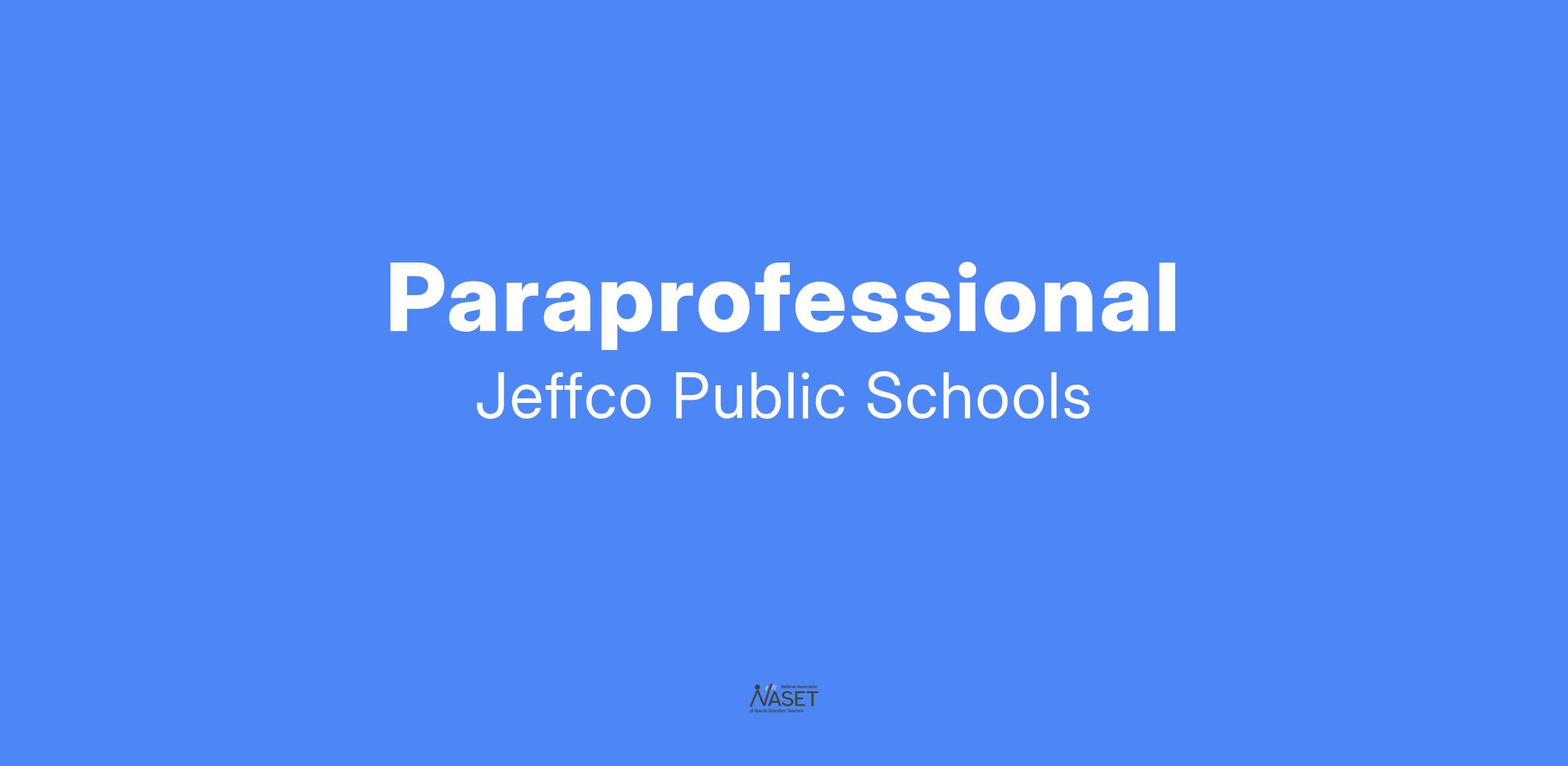 EDUCATION AND TRAINING: High school diploma/GED required. Jeffco paraprofessional training will be offered upon acceptance of a position and must be completed at first available training opportunity.