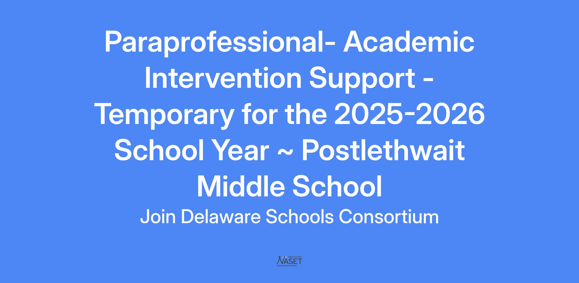 Paraprofessional- Academic Intervention Support -Temporary for the 2025-2026 School Year ~ Postlethwait Middle School