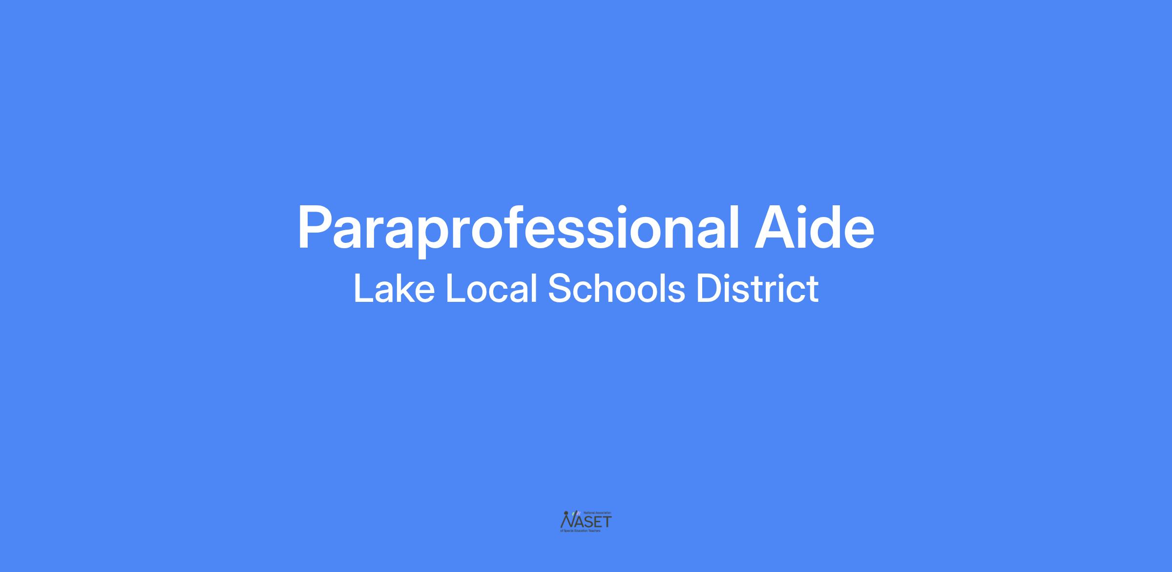 Description: Lake Paraprofessionals provide assistance to a variety of students who require one on one assistance with daily activities to maximize their potential. Students may have a variety of needs including medical, behavioral, cognitive, and sensory. Applicants should be calm and poised individuals with a passion for all kids, utilizing their ability to be flexible based on the needs of the students they serve.