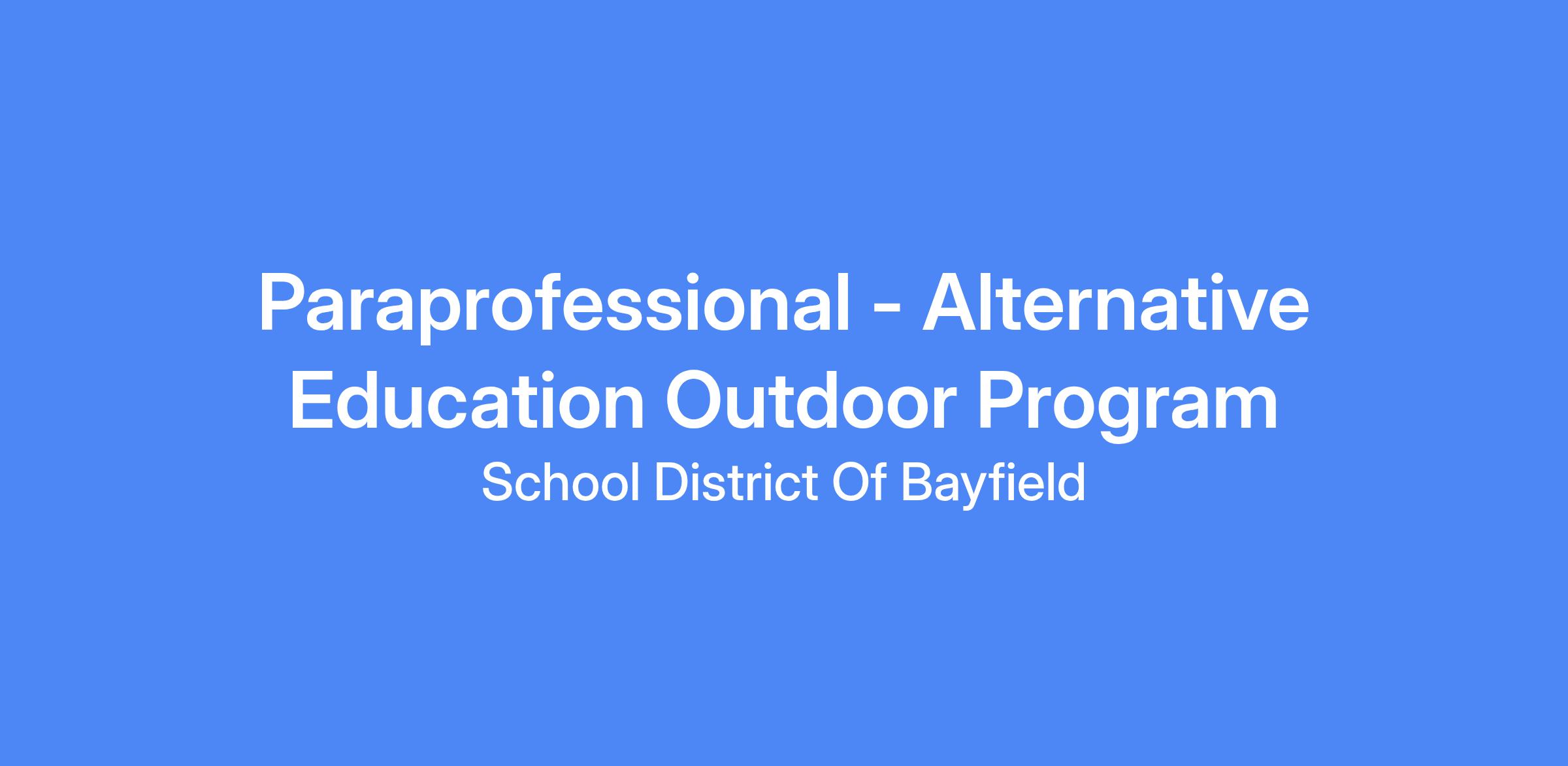 The Paraprofessional in our Alternative Education Program plays a critical role in supporting students with diverse learning needs in a hands-on, outdoor classroom environment. This position works directly with students to facilitate their learning and development in an alternative education setting, fostering a safe and enriching outdoor educational experience. The ideal candidate will have a passion for working with students, a strong understanding of outdoor education principles, and a commitment to supporting student growth and well-being.