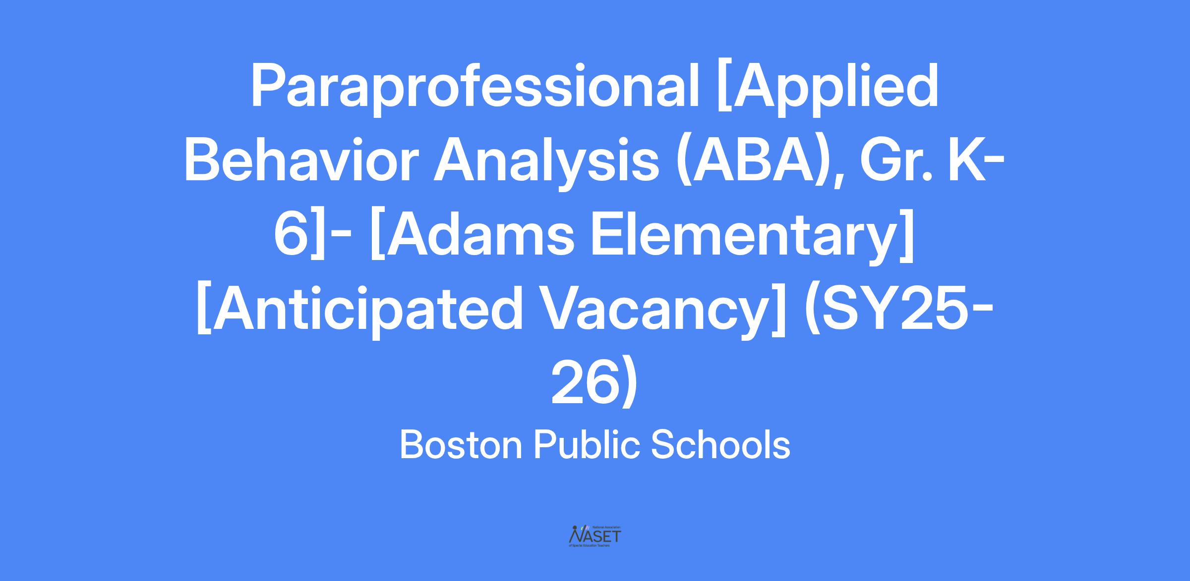 Paraprofessional [Applied Behavior Analysis (ABA), Gr. K-6]- [Adams Elementary][Anticipated Vacancy] (SY25-26)