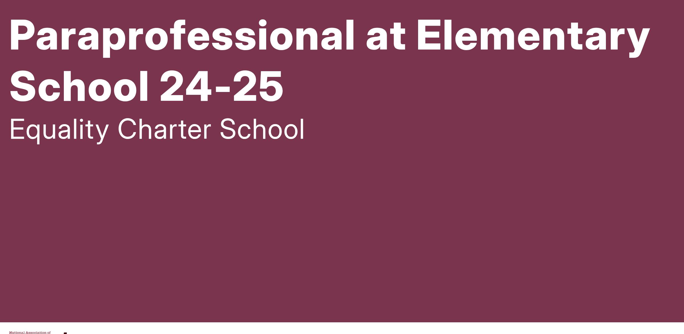 Please note: This position is targeted for up to two months. Our hope is that the right candidate can continue the relationship with Equality Charter School through NYC DOE's paraprofessional program.