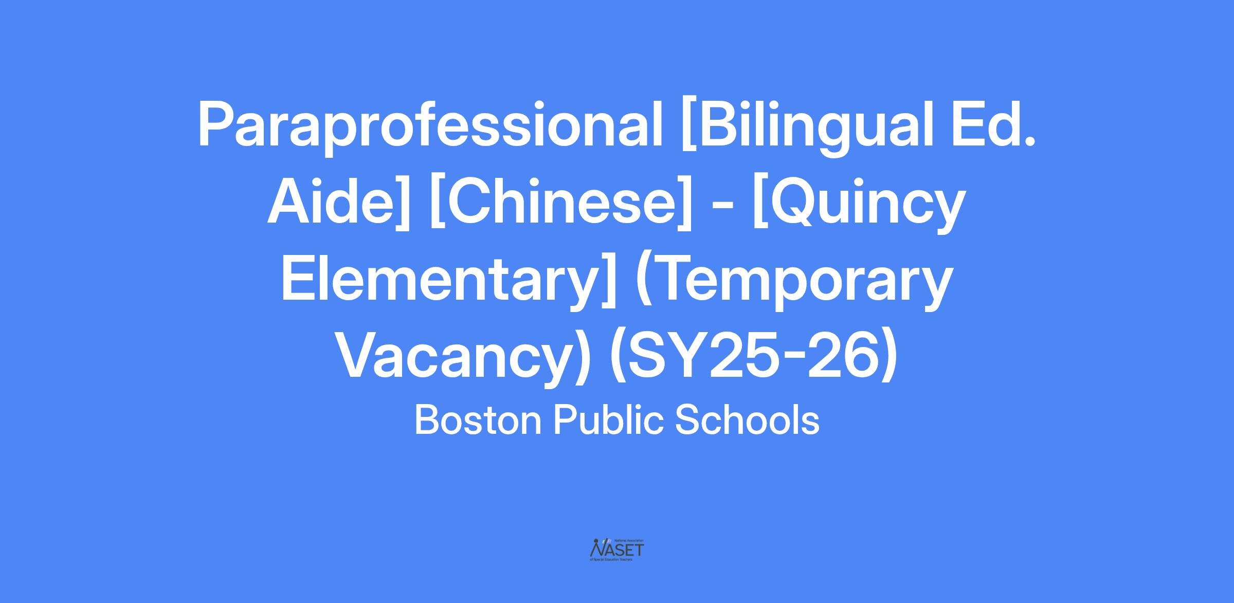 This position is an anticipated temporary vacancy covering for a paraprofessional on leave. The position is expected to end on 11/05/2025 when the current paraprofessional returns to work. At that time, the covering paraprofessional will be terminated from the position.