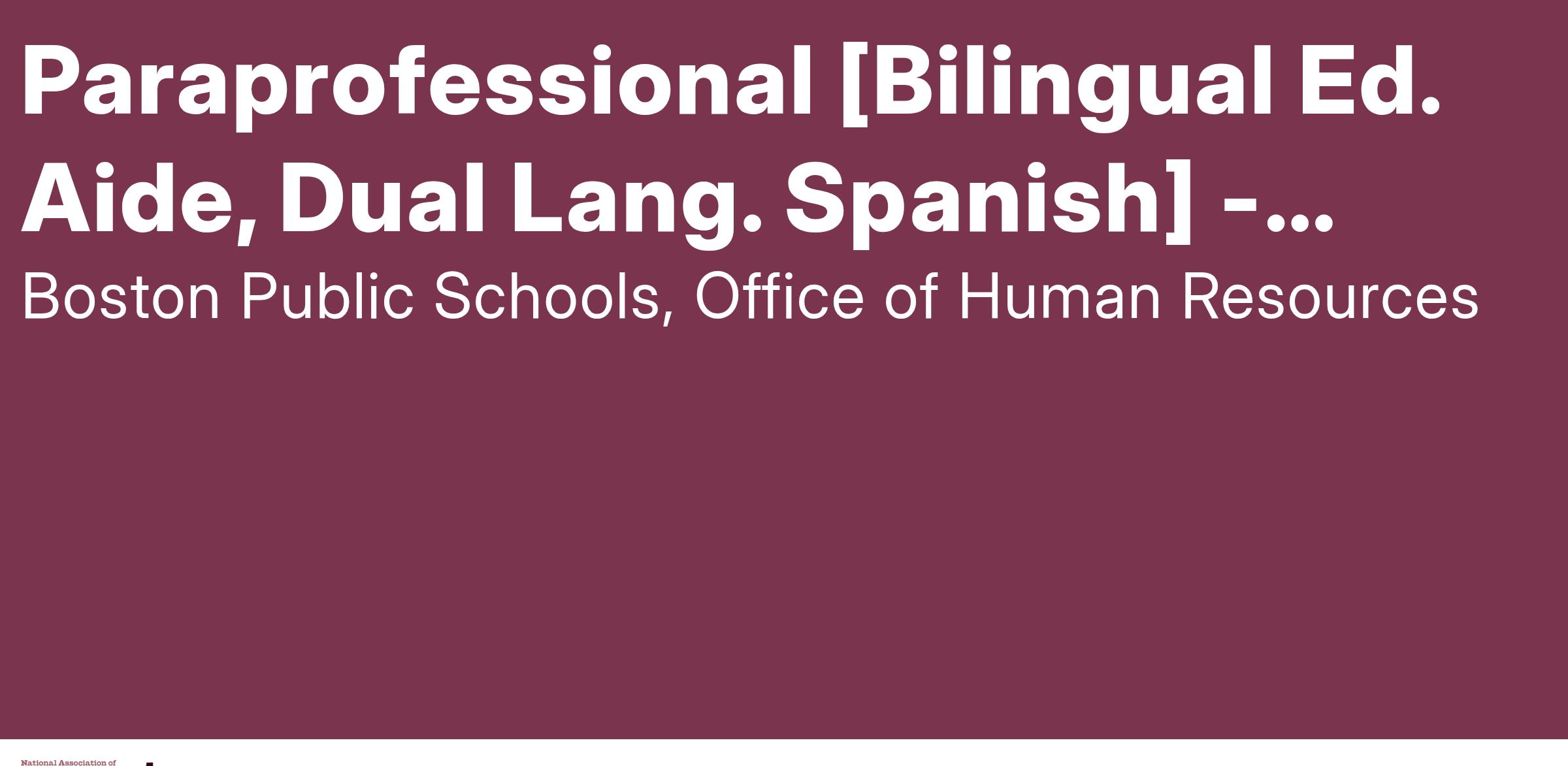 Paraprofessionals will assist teachers in providing an innovative, high quality education program designed to meet the needs of the children in the Boston Public Schools. Paraprofessionals will work with school staff to create an educational environment in which quality and continuity are key factors in educating the students of the Boston Public Schools.
