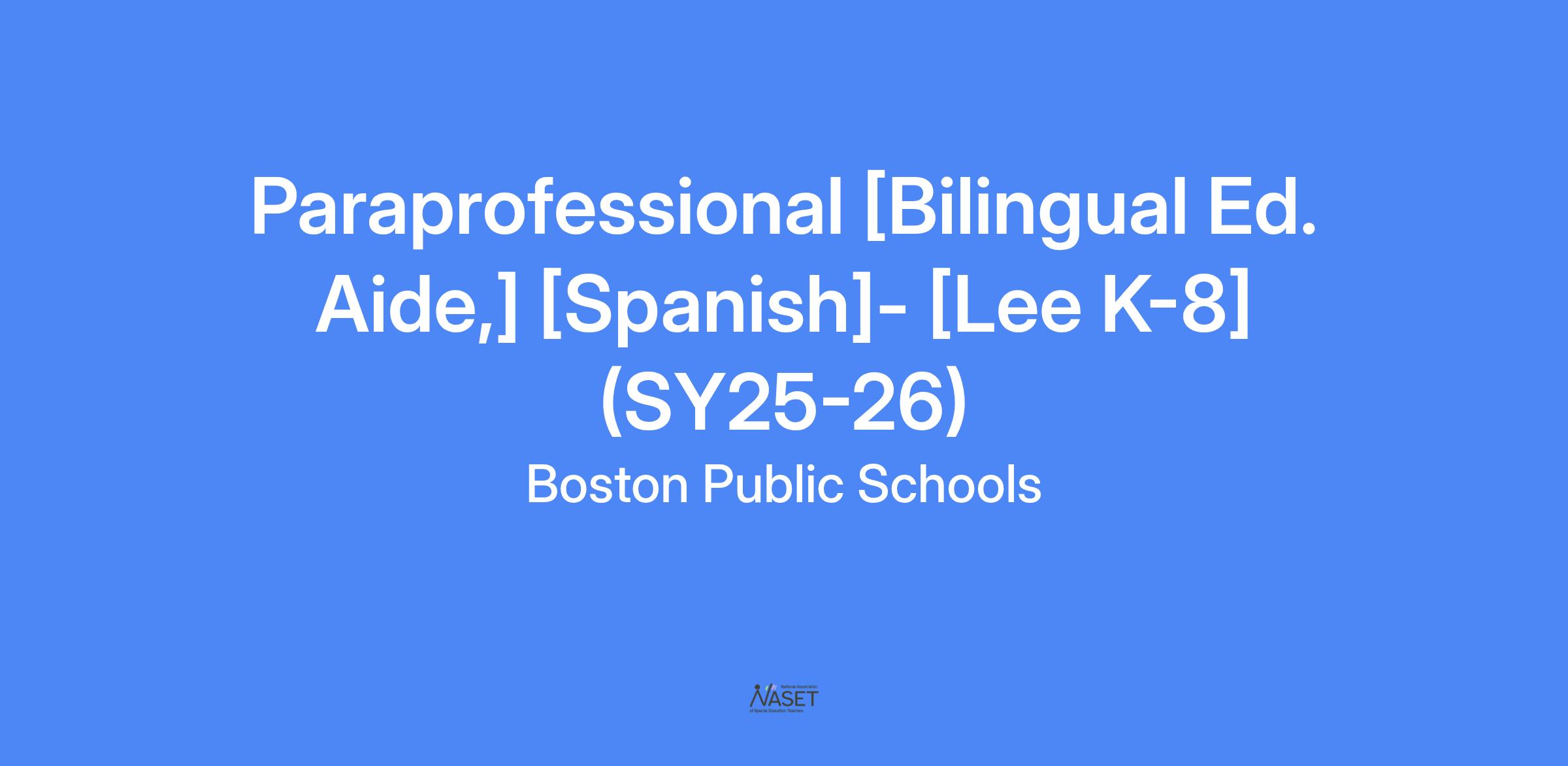 Paraprofessional [Bilingual Ed. Aide,] [Spanish]- [Lee K-8] (SY25-26)