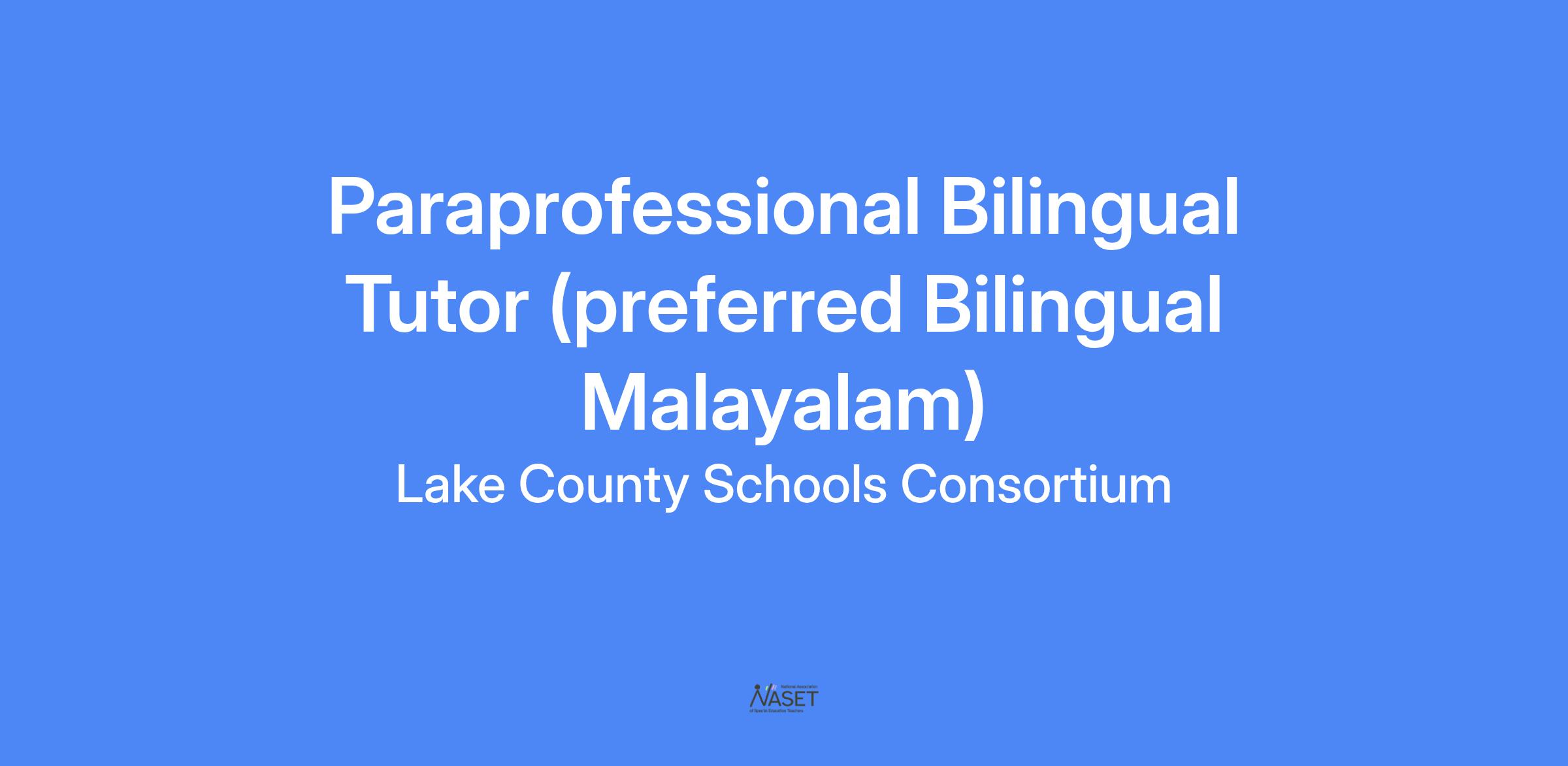 Paraprofessional Bilingual Tutor (preferred Bilingual Malayalam)
