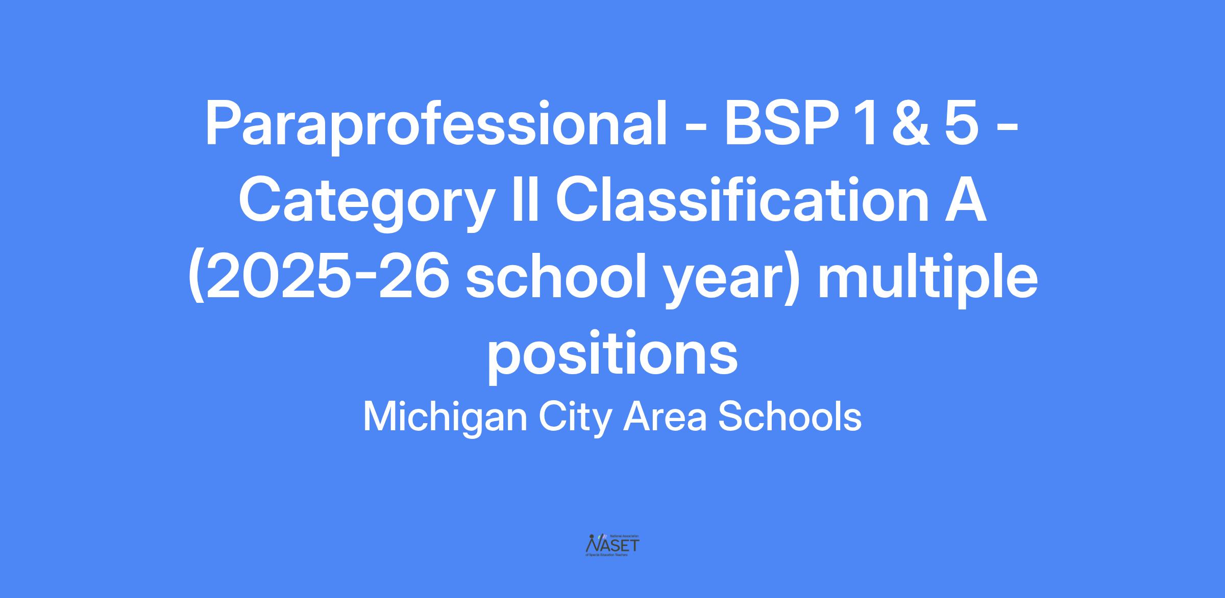 The Paraprofessional is to assist the teacher with the implementation of Individual Education Programs of students identified with disabilities. It is the responsibility of the teacher to provide direct instruction to the students, providing the Paraprofessional guidance in a variety of areas. The role of the Paraprofessional is to work in a supportive capacity as part of a team to meet the needs of each student. Teacher assistance may be provided across multiple settings such as special education classrooms, general education classrooms, and other designated learning environments within the school or community. In addition, Paraprofessionals assist with classroom procedures that may include but are not limited to; educational support, mobility support, vocational support, behavior support, assistance with functional skills, and physical or occupational therapy support.