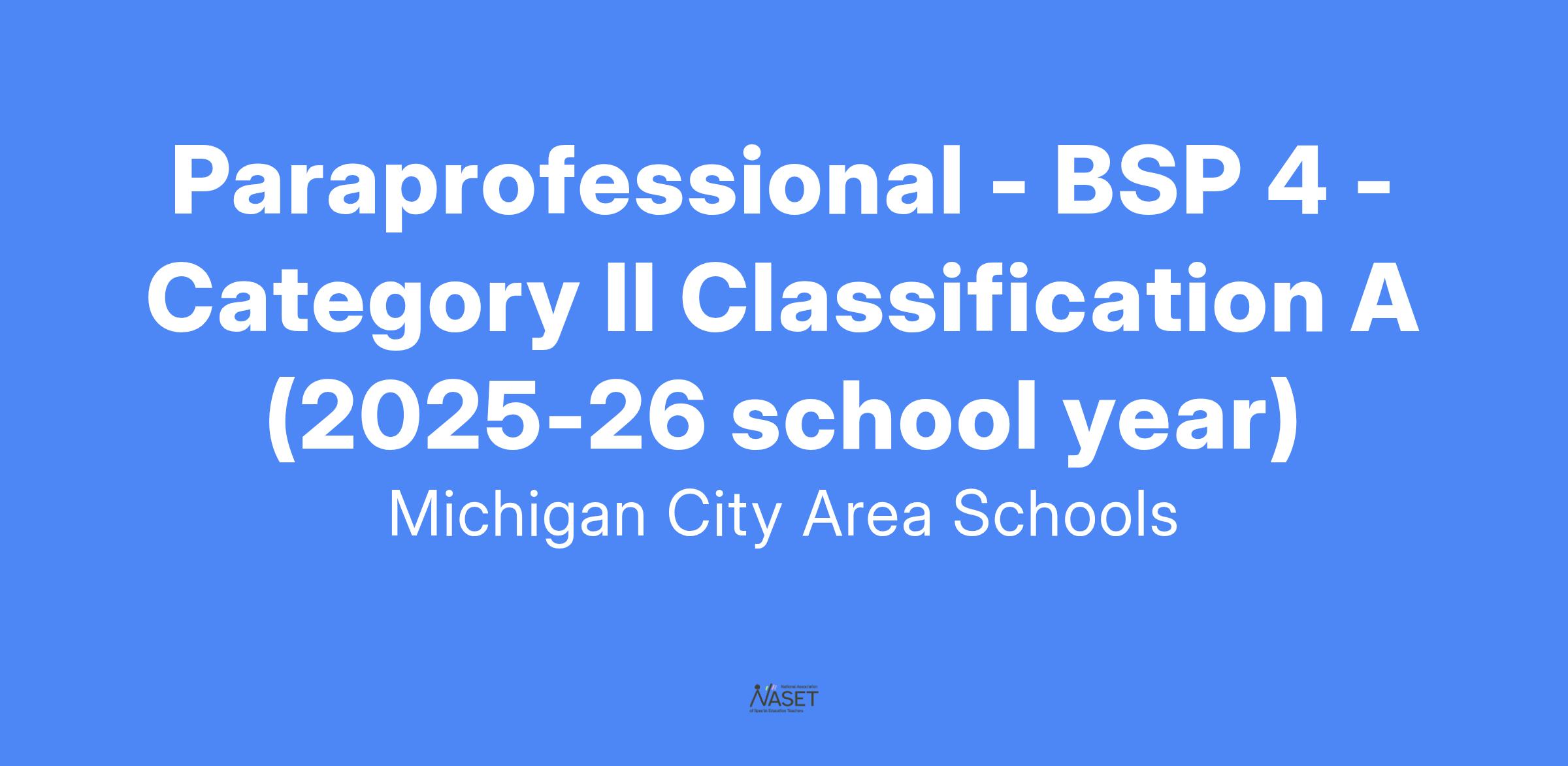 Paraprofessional - BSP 4 - Category II Classification A (2025-26 school year)