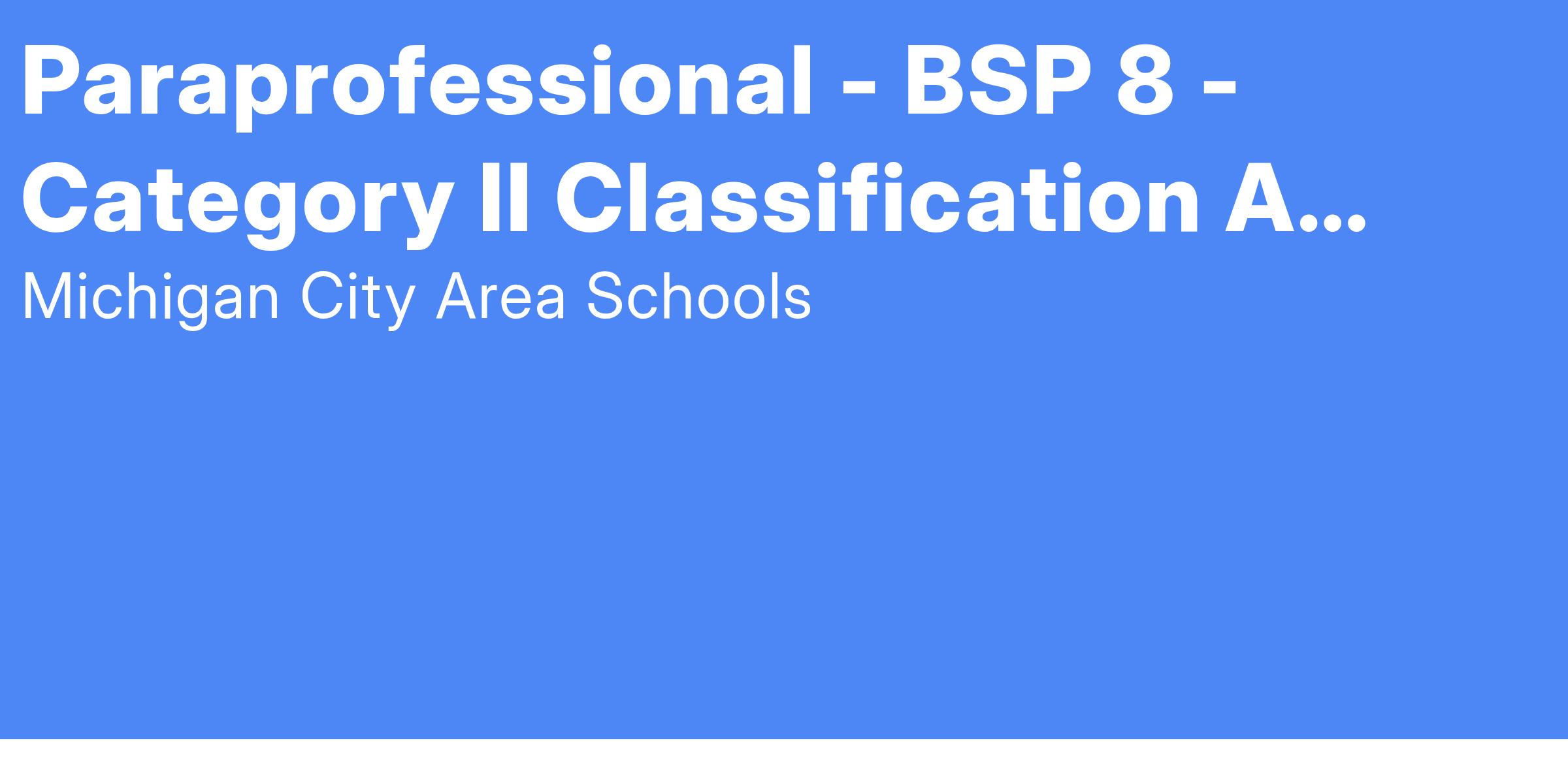 Paraprofessional - BSP 8 - Category II Classification A (Anticipated)
