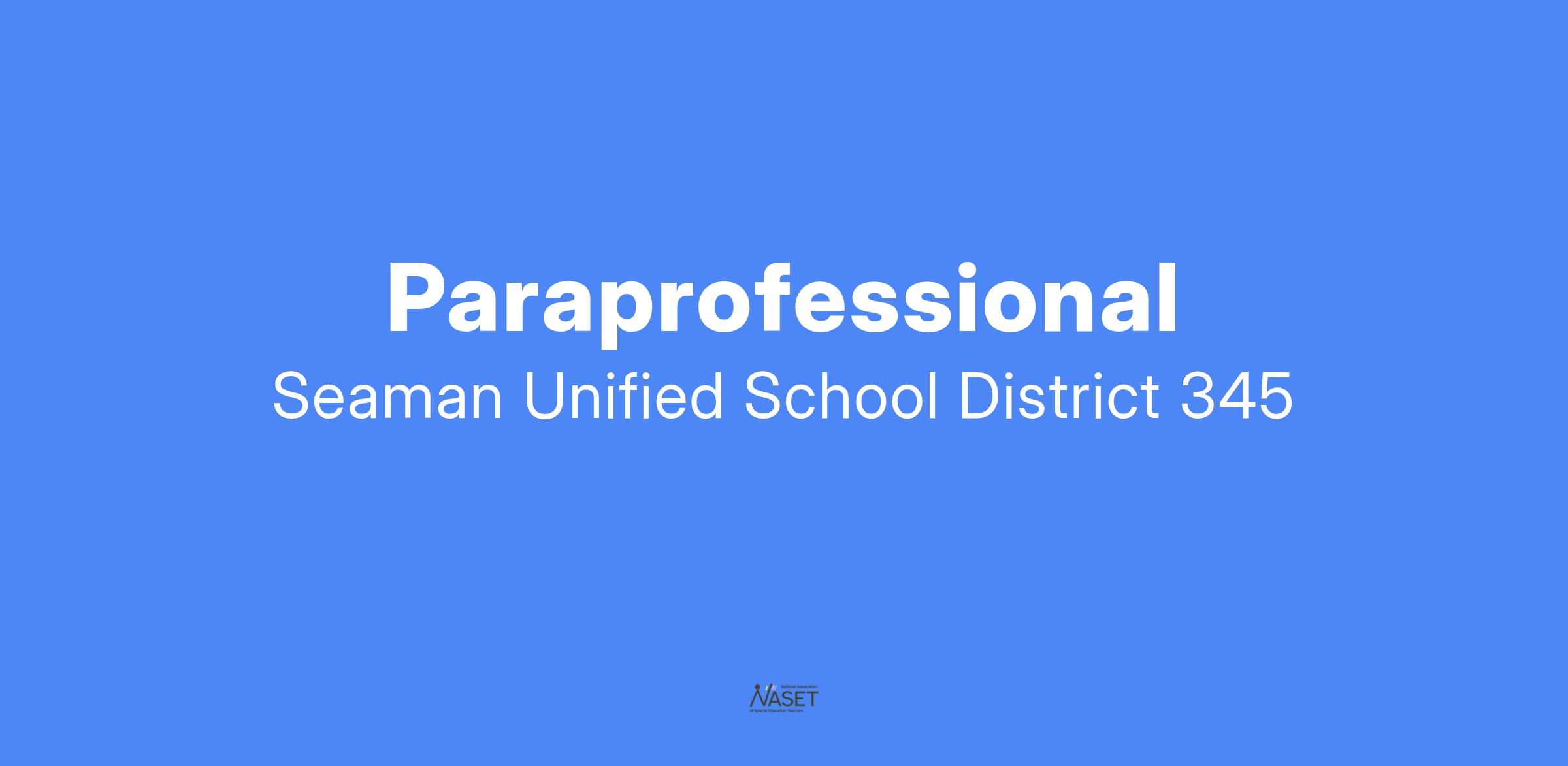 Seaman USD #345 has openings for a Special Education paraprofessionals. This is a full-time position for the 24-25 school year. We have openings for our special education resource room as well as other program rooms. Para professionals work on teaching skills to students in small groups in the special education classroom as well as with students in the general education classrooms.