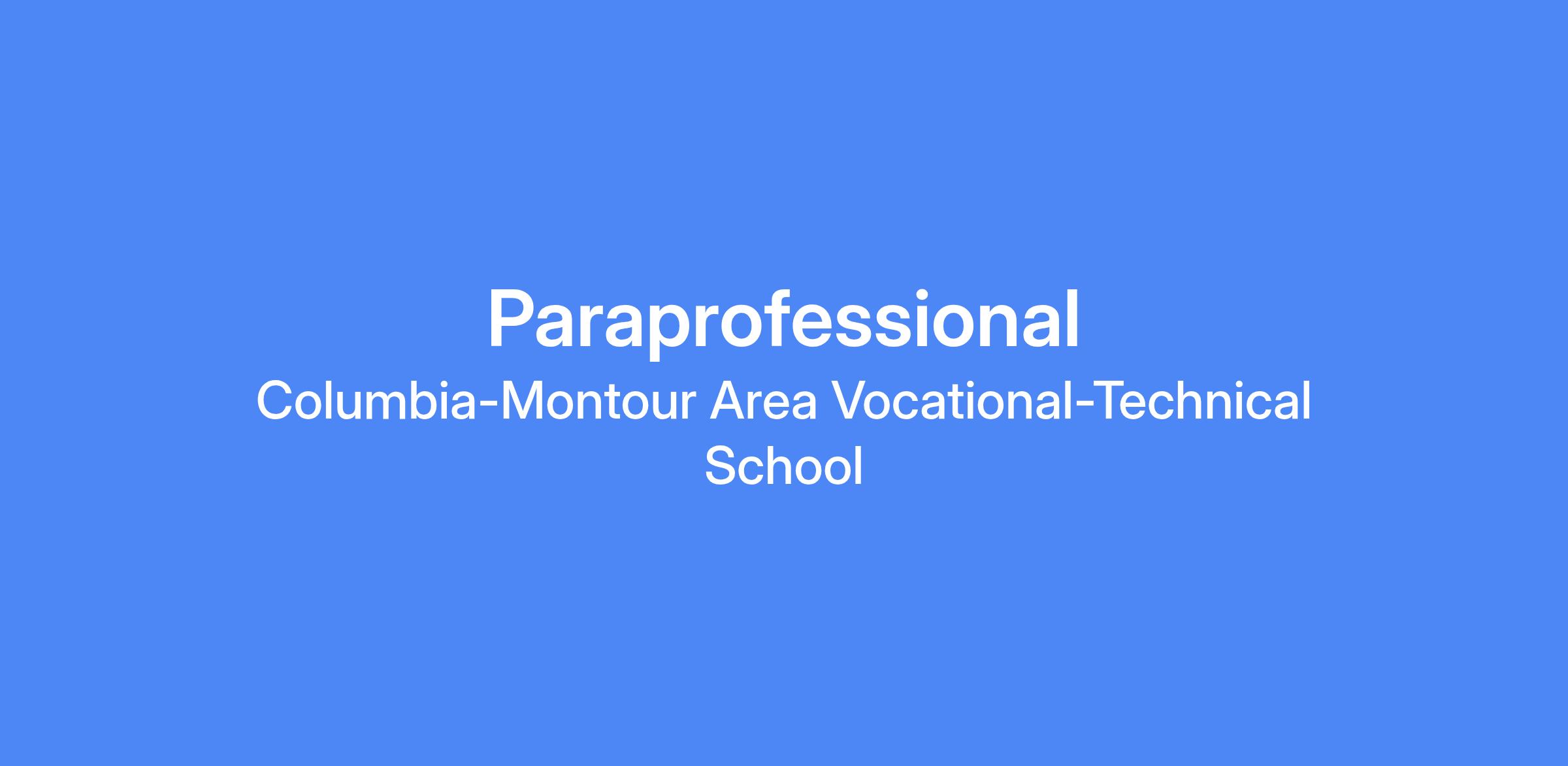 TITLE: Paraprofessional (37 ½ hours per week) QUALIFICATIONS: 1. High school diploma required; Associate degree preferred. 2. Must be at least 18 years of age. 3. Must possess a high degree of integrity, responsibility, and reliability. 4. Must be willing to complete 20 hours of certification through the LEA within the first year of employment. REPORTS TO: Principal and Director of Special Education WORK DAY: 7:45 a.m. – 3:15 p.m. (182 Days/Year) JOB GOAL: To work with any student in any curriculum and help them achieve the goals and objectives of that program PERFORMANCE DUTIES AND RESPONSIBILITIES: