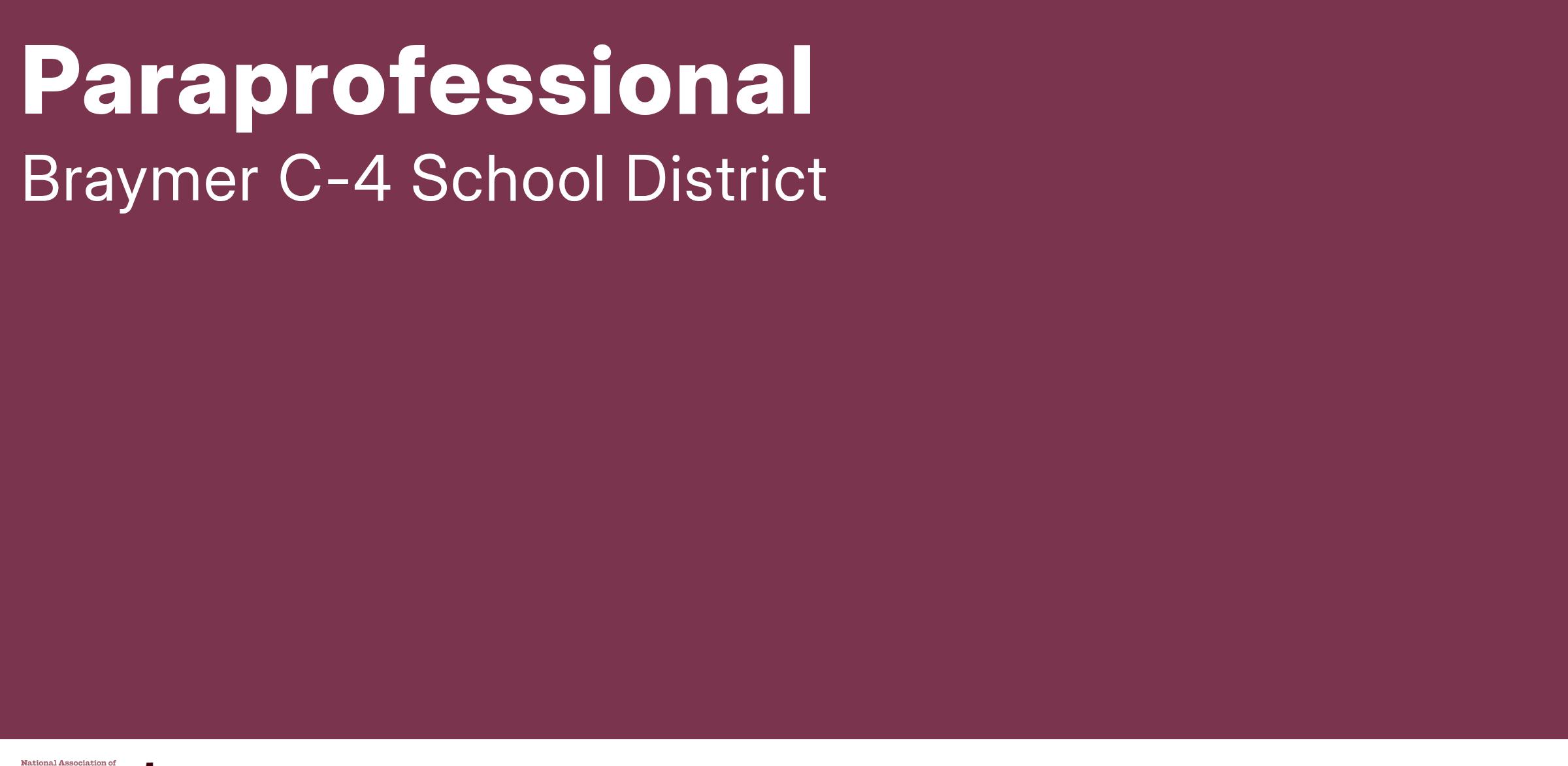 The Braymer C-4 School District is seeking a full time or part time special education paraprofessional for the 2025-26 school year. Candidates must possess or be able to obtain Paraprofessional certification for the state of Missouri. The position is open until filled. Interested applicants should apply online at braymer.schoolspring.com. Questions? Call 660-645-2284 or email Tyna Morrison-Elementary Principal at tmorrison@braymerc4.net.