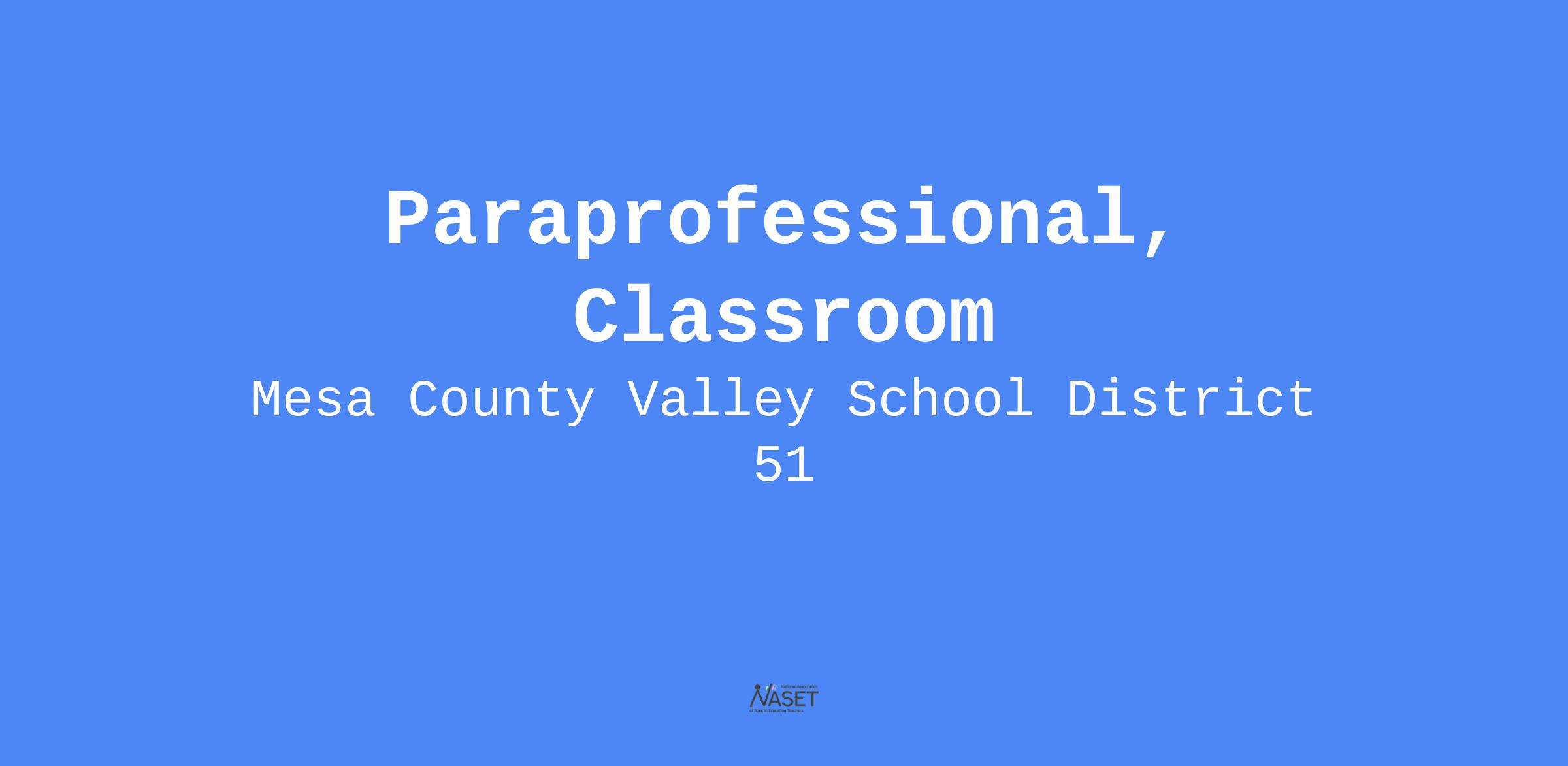 Job Title:Paraprofessional, Classroom
